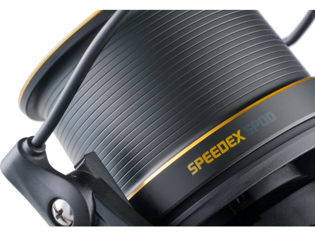 Tento naviják byl vyvinut speciálně pro použití se spodovými pruty a pro markerování. Jeho masivní převody se šnekovým systémem, kombinované s velkým průměrem cívky a zvýšeným převodovým poměrem umožnily dosáhnout úžasného návinu 145cm na jednu otáčku kličkou při zachování potřebné síly a odolnosti během neustálého navíjení. Celkovou odolnost a hladký chod podporuje i použití deseti ložisek. Nadstandardní délka cívky spolu se super pomalou oscilací zajišťují precizní ukládání vlasce i spodových šňůr s tenkým průměrem a pomáhají výrazně prodloužit délku náhozu při vnadění raketou. Posledním klíčovým parametrem perfektního spodového navijáku je nízká hmotnost. I tento požadavek SPEEDEX SPOD spolehlivě plní. Vezmeme-li v úvahu jeho mimořádně příznivou cenu, máme zde naviják, který jen těžko bude hledat konkurenci.