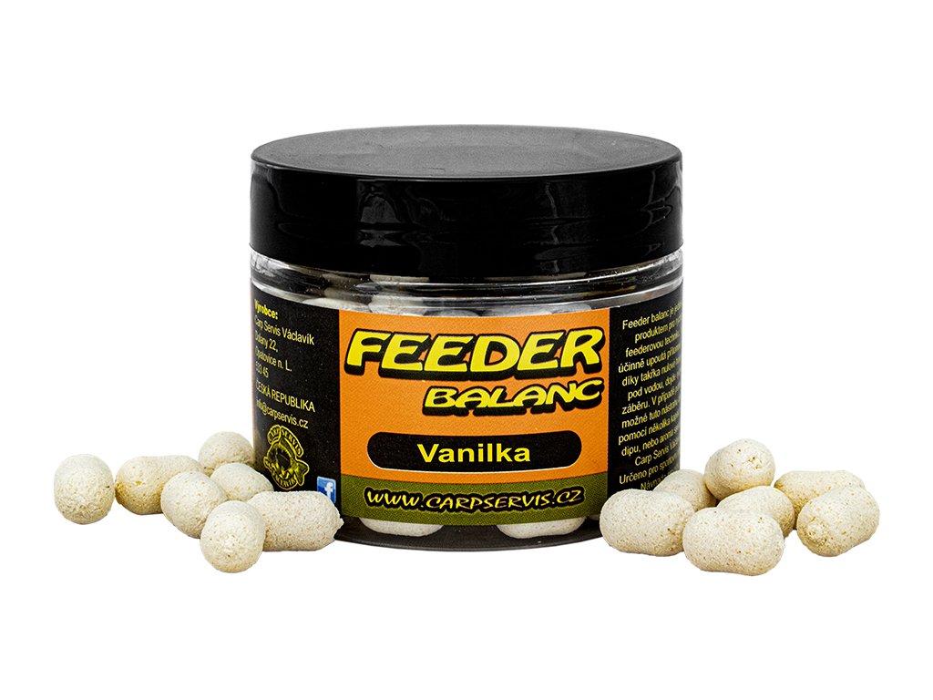 Feeder balanc je nadlehčená (neutrální - vyvážená) silně aromatická nástraha ve výrazných barvách. Je určená pro feeder nebo lehkou kaprařinu. Nutno nastražit pomocí vlasové metody nebo silikonových kroužků. Feeder balanc je jedinečným produktem pro rychlou feederovou techniku. Velmi účinně upoutá přítomné ryby a díky takřka nulové hmotnosti pod vodou dojde rychle k záběru. V případě potřeby je možné tuto nástrahu dipovat pomocí několika kapek feeder dipu nebo aroma speciálu od Carp Servis Václavík.