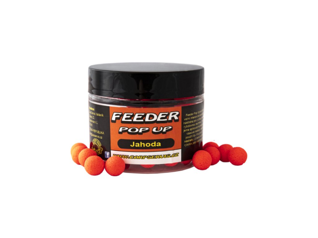 Feeder Pop Up přináší do rodiny feederových nástrah jednu ze zásadních dimenzí pro lov nadprůměrných kaprů pomocí této akční rybolovné techniky. Především tyto mini plovoucí nástrahy dokáží zaujmout kapitálního kapra. Zvolené aromatické varianty Feeder Pop Up patří mezi nejúspěšnější v naší nabídce. Teoreticky lze říci, že by bylo možné dát na jejich úspěšnost záruku.
