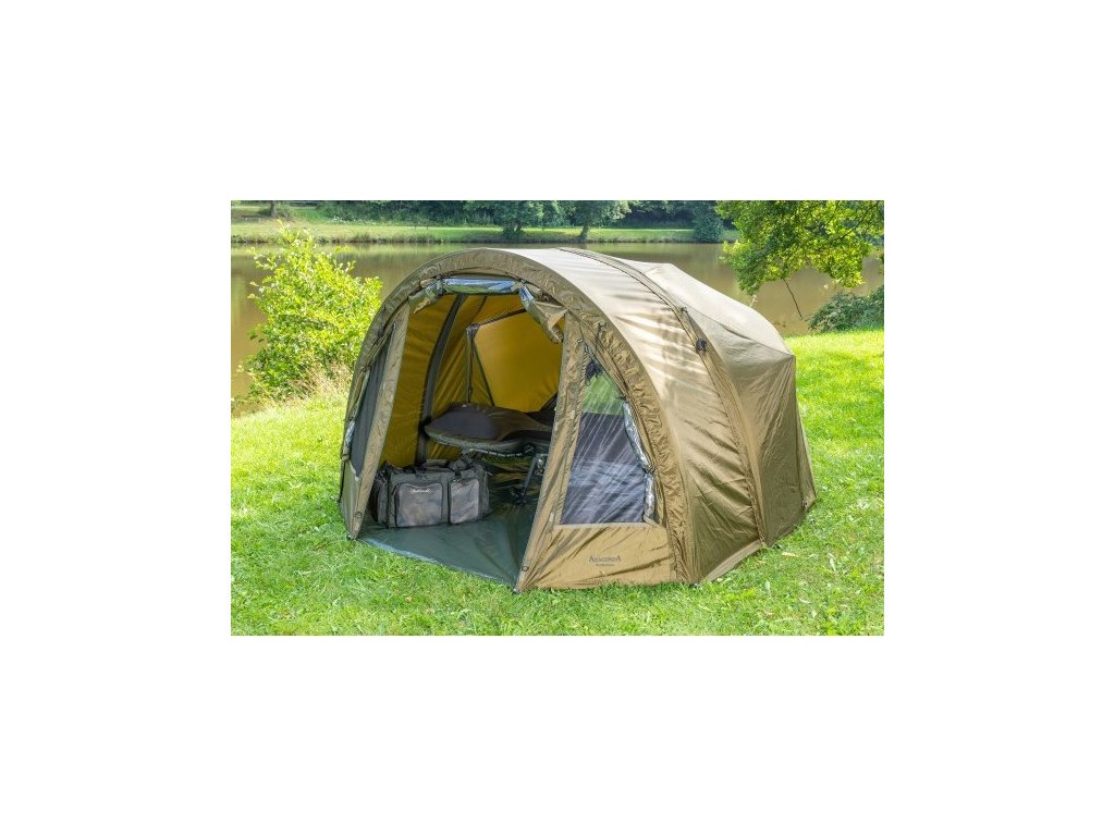 Bivak deštníkové konstrukce. Velkou výhodou je velmi snadná a rychlá manipulace. Dá se použít jako brolly (pouze deštníková konstrukce) nebo můžeme připevnit přední díl, čímž získáme celý bivak. V zadní části jsou dvě okna s moskytiérou, které zaručují dokonalou cirkulaci vzduchu.- stabilní deštníková konstrukce
