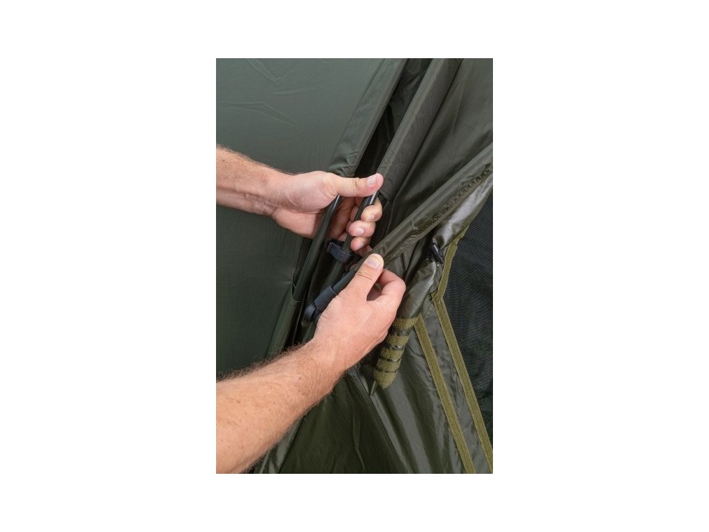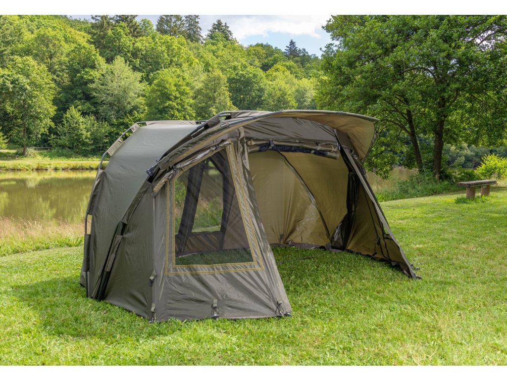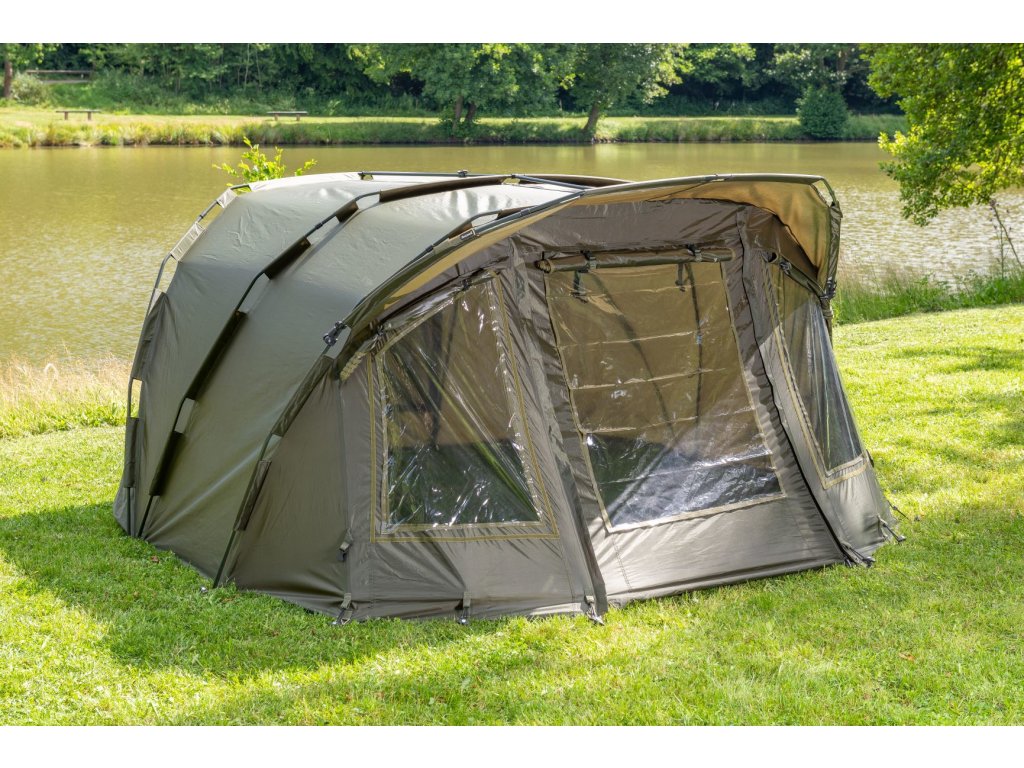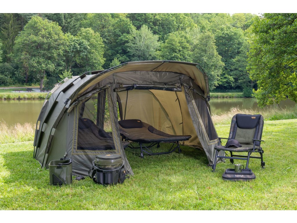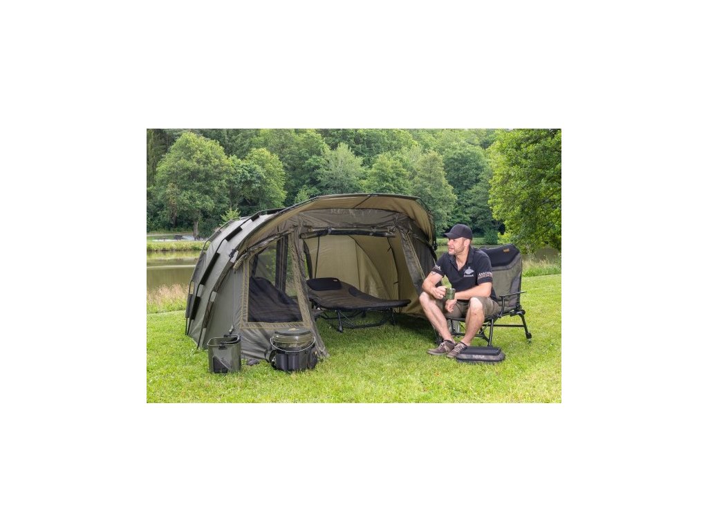 Tento bivak je spíše velkolepý vojenský bunkr. Je multifunkční a velmi prostorný. Může být postaven jako velký bivak minimálně pro 2 lehátka, ale může být během chvilky proměněn v bivak pro jednoho. Stačí pouze stáhnout zadní část a zajistit ji s připevněnými sponami. Velký kšilt zabraňuje vnikání dešťové vody vstupním prostorem. Systém tří vzpěr dává bivaku pevnou stabilní základnu, na kterou se můžeme spolehnout ve větrním počasí. K bivaku lze dokoupit zimní přehoz. Bivak:- rozměry pro dvě lehátka 300 x 300 x 150 cm