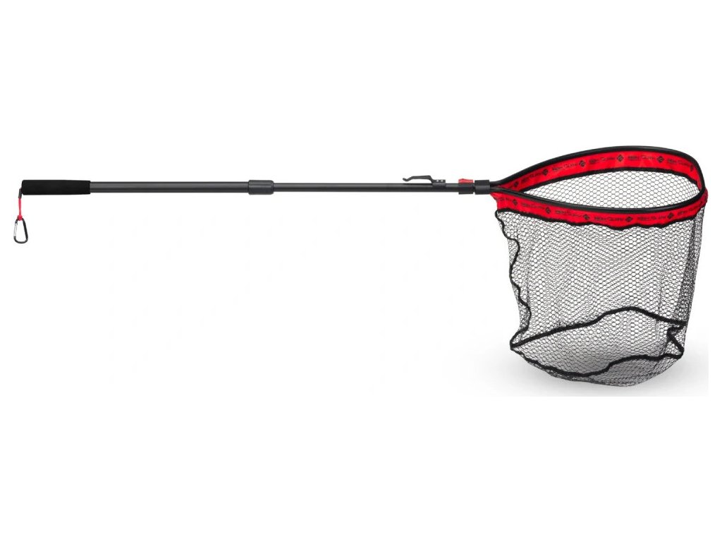 Iron Claw Adjustable Speed Rubber Scoop Small je praktický přívlačový podběrák s výklopnou hlavou a zasouvací rukojetí, díky čemuž se snadno přenáší i skladuje. Měkká, gumovaná síťka s oky 10 mm minimalizuje poškození slizu a snižuje riziko zamotání háčků, takže je ideální pro šetrné podebrání ryb. Kompaktní rozměry ocení rybáři při lovu z belly boatu, z břehu i při brodění v řece. Boční klip umožňuje podběrák zavěsit na prsačky nebo opasek a pro rychlou kontrolu délky úlovku je na rukojeti integrované měřicí pásmo. Součástí je i transportní karabina s nylonovou šňůrou.