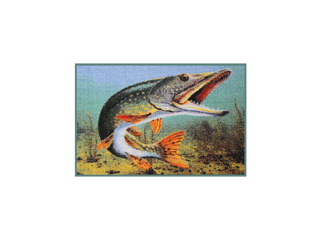 Excelentní rohož s výrazným, plnobarevným 3D motivem štiky plovoucí pod vodní hladinou. Určitě potěší každého rybáře.Tato rohož je vyrobena z odolného materiálu, okraj je obšitý tmavě zeleným šitím a ze spodní části je ošetřena latexovou vrstvou. Rozměr 60x40 cm je velmi kompaktní a hodí se před všechny vstupní dveře. Ukažte návštěvě už u vchodu kdo je doma pánem :)