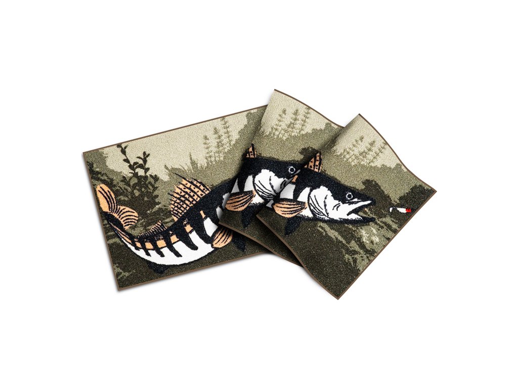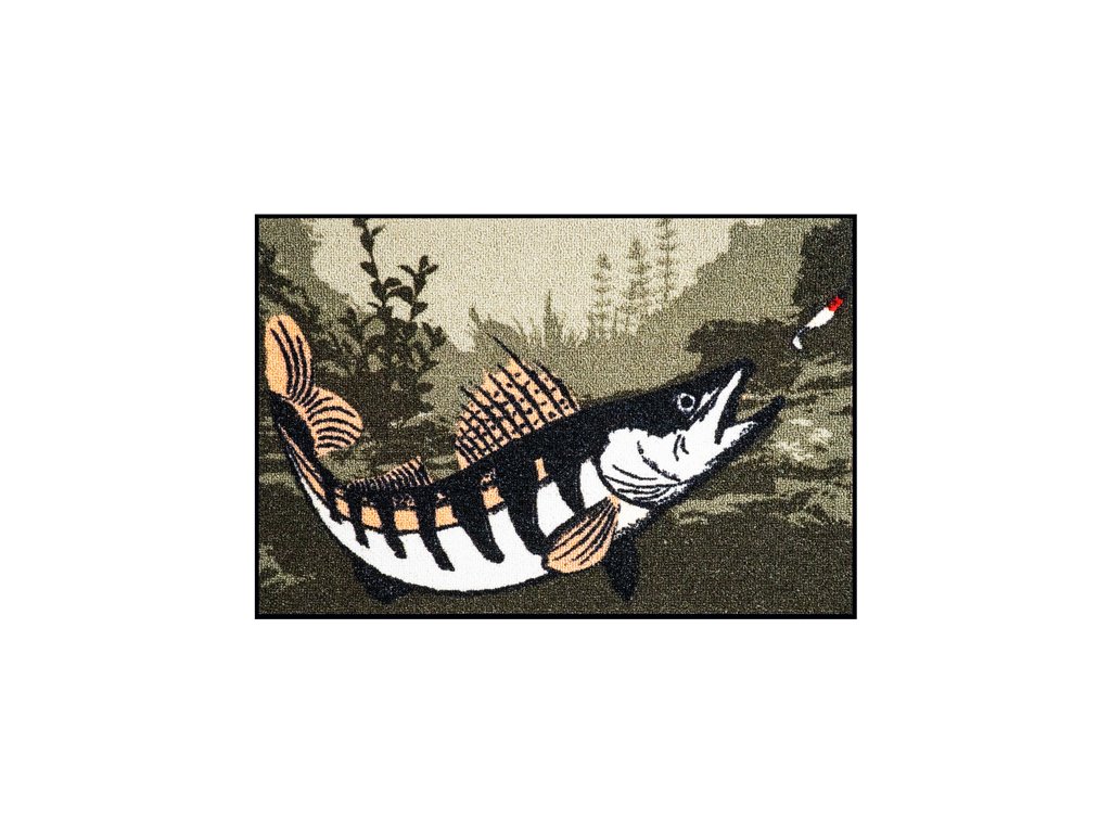 Excelentní rohož CatchMe! Candát. Určitě potěší každého rybáře. Tato rohož je vyrobena z odolného materiálu, okraj je obšitý hnědým šitím a ze spodní části je ošetřena latexovou vrstvou. Rozměr 60x40 cm je velmi kompaktní a hodí se před všechny vstupní dveře. Ukažte návštěvě už u vchodu kdo je doma pánem :) Unikátní dizajn zobrazující candáta určitě zahřeje srdce nejednoho vláčkaře.