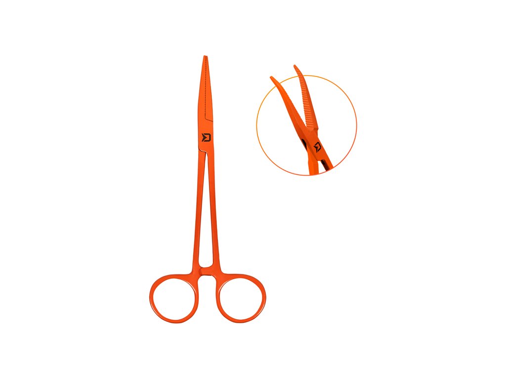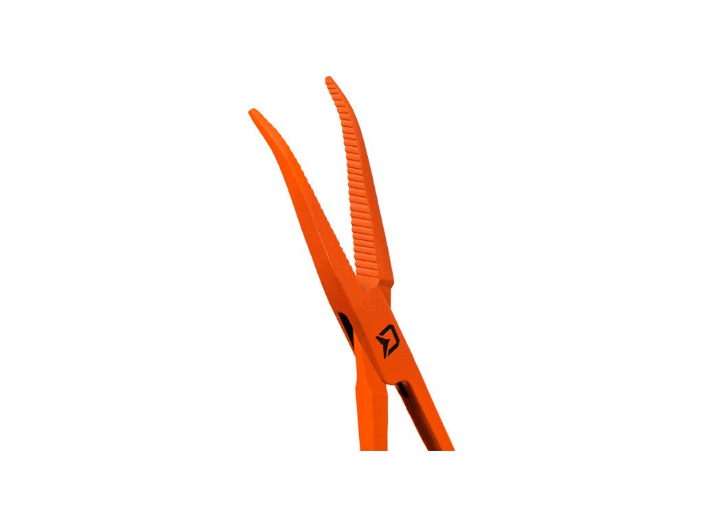 Peán Delphin ATAK! REFLEX se zahnutými čelistmi je rybářská pomůcka, která slouží k šetrnému uvolnění háčku z tlamy ryby. Vyznačuje se výraznou oranžovou barvou, díky které ho vizuálně vždy lehce identifikujete. Je vyroben z kvalitní oceli a vnitřní strana čelistí je opatřena zoubky, které pomáhají lépe uchopit háček. V místě spoje se nachází efektní černé logo Delphin.