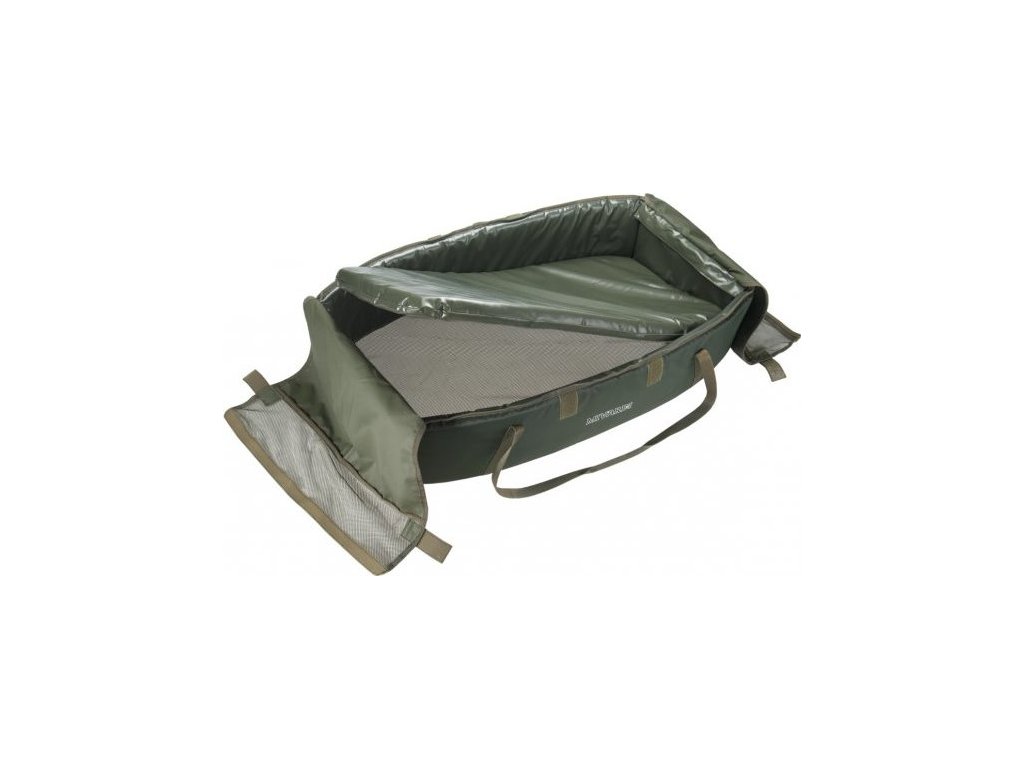 Rozměrná a skvěle polstrovaná podložka pod kapra. Vnitřní materiál je absolutně šetrný k rybě. Podložka je vybavena klekátkem a síťkovým víkem, které lze částečně nebo kompletně uzavřít pomocí suchých zipů.