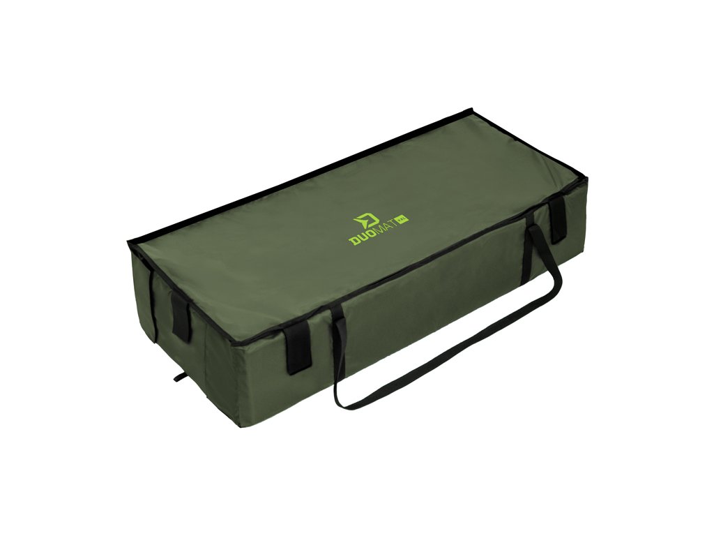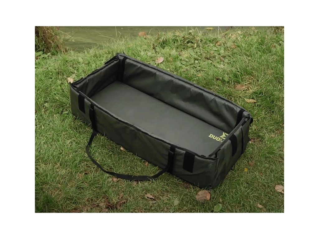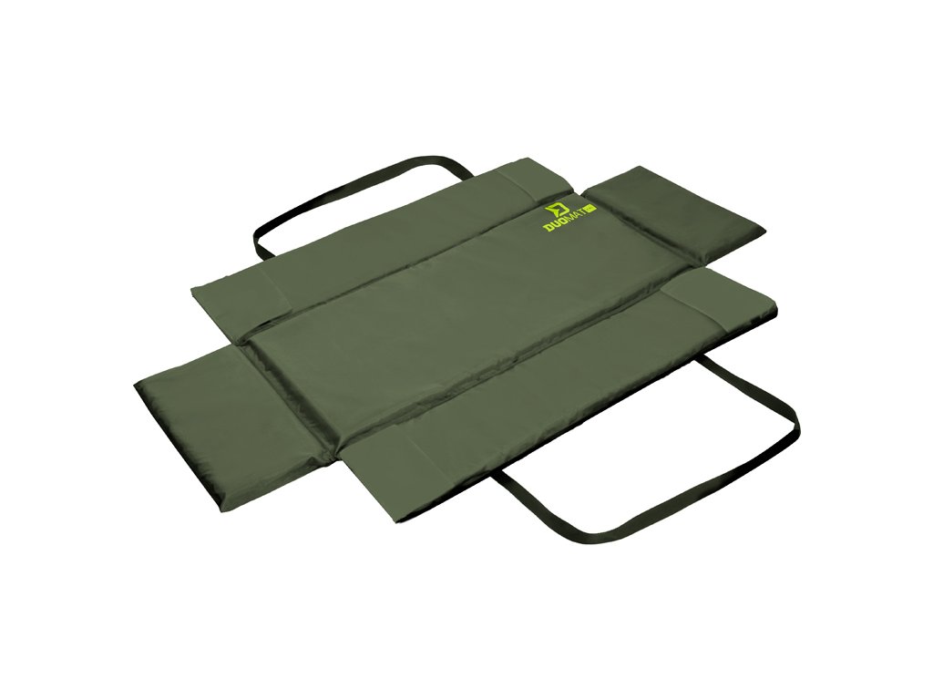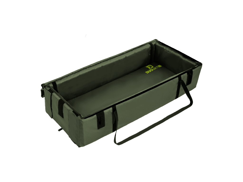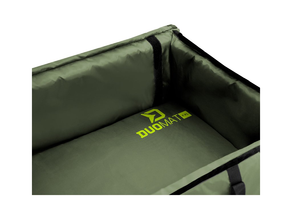 Po úspěchu jedinečné podložky DuoMAT jsme se rozhodli na trh uvést její větší a všestrannější verzi. DuoMAT XXL v sobě uchovává všechny podstatné vlastnosti charakteristické pro podložky z této řady. Jsou jimi zejména variabilita, skvělé transportní rozměry, kvalita zpracování použitých materiálů a v neposlední řadě bezpečnost úlovku. Polstrování z 30 mm silné a pevné pěny se postará o spolehlivou ochranu vašich úlovků. Okraje vyvýšené až do výšky 20 cm zaručí, že ryba z podložky nevyklouzne ani při nerovném terénu a vrchní překrývací část opatřena suchými zipy spolehlivě zamezí případnému vyskočení úlovku. Materiál použitý při výrobě je rychleschnoucí, odolný a v případě zašpinění ho lze jednoduše očistit. Název DuoMAT znamená, že podložku lze použít dvěma způsoby. Jako standardní podložku bez okrajů, nebo si můžeme tyto okraje zvednout a zafixovat je pomocí suchých zipů, které se nacházejí v každém z rohů. Při vypouštění ryby lze odepnout jen jeden z okrajů, čímž ryba snadno vyklouzne do vody. Podložka disponuje dvěma gumovými popruhy, které jsou určeny k upevnění během transportu. Oproti základnímu Duomatu tento obsahuje navíc pevné textilní rukojeti, se kterými je možné samotnou podložku, ale také úlovek v ní pohodlně přenášet. DuoMAT XXL je nestandardně, ale zato velmi důmyslně řešená podložka, která je díky svým parametrům plnohodnotnou variantou vaničkových podložek, přičemž její cena a transportní rozměry jsou mnohem příznivější. Technické parametry: Tloušťka matrace: 3 cm Rozměry podložky na plocho: 140x80 cm Rozměry podložky s vyvýšenými okraji: 100x45 cm Výška okraje: 20 cm