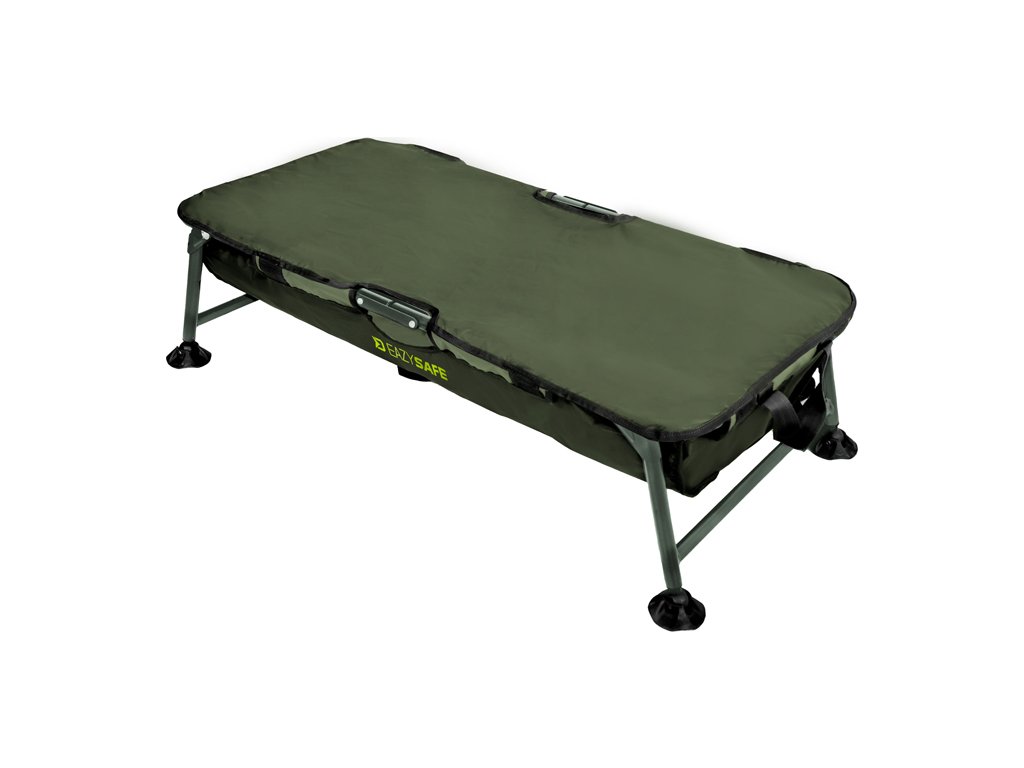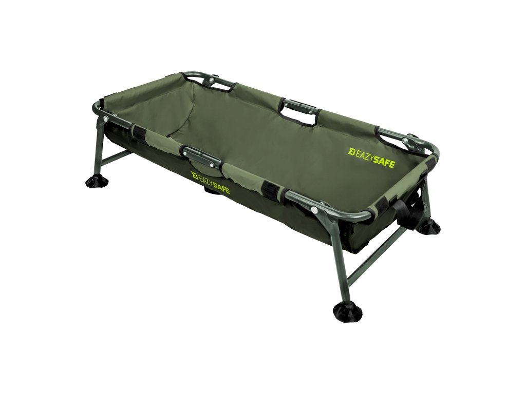 Při navrhování tohoto produktu byl cíl jasný. Přinést na trh vaničku za bezkonkurenční cenu, která bez problémů zvládne i ty největší ryby. Výsledek? Delphin EazySAFE! Základ podložky tvoří velmi pevná železná konstrukce s průměrem trubek až 22 mm. Díky tomu má vanička výbornou stabilitu a nehrozí její převrácení, případně poškození při manipulaci s úlovkem. Použitá látka s pogumovaným povrchem má několik výhod. Po ukončení lovu ji stačí do sucha vytřít a není tak nutné dlouho čekat dokud vyschne. Navíc je velmi snadno omyvatelná a neabsorbuje do sebe nepříjemně pachy, které se mohou následně šířit při transportu ve vašem autě. Celá vanička je velmi pevná a při extrémních testech bez problémů zvládla udržet statické závaží o váze až 75kg! Na obou krajích je všitá sítová látka, přes kterou zevnitř lehce odteče voda. EAZYSAFE také disponuje látkou na překrytí, která je opatřena suchými zipy. Můžete tak v ní rybu uzavřít, pokud si například potřebujete připravit fotoaparát, případně jít nabrat vodu na polití úlovku. Nohy jsou opatřeny kloubovými patkami, které se přizpůsobí terénu a zamezí zaboření do země v případě měkčího podkladu. Při navrhování jsme však mysleli i na transport, což je další silná stránka tohoto produktu. Ve středu je konstrukce důmyslně předělena a tak ji stačí jednoduše přeložit napůl a pomocí rukojetí pohodlně přenášet. V produktu Delphin EAZYSAFE získáte za výbornou cenu jednoduchou, ale zato důkladně promyšlenou a 100% funkční vaničku, v níž se o svůj úlovek nebudete muset nikdy obávat. Technické parametry: Vnější rozměry: 100x50x30cm Rozměr lůžka: 95x45x20cm Transportní rozměry: 50x50x12cm Hmotnost: 3,60kg