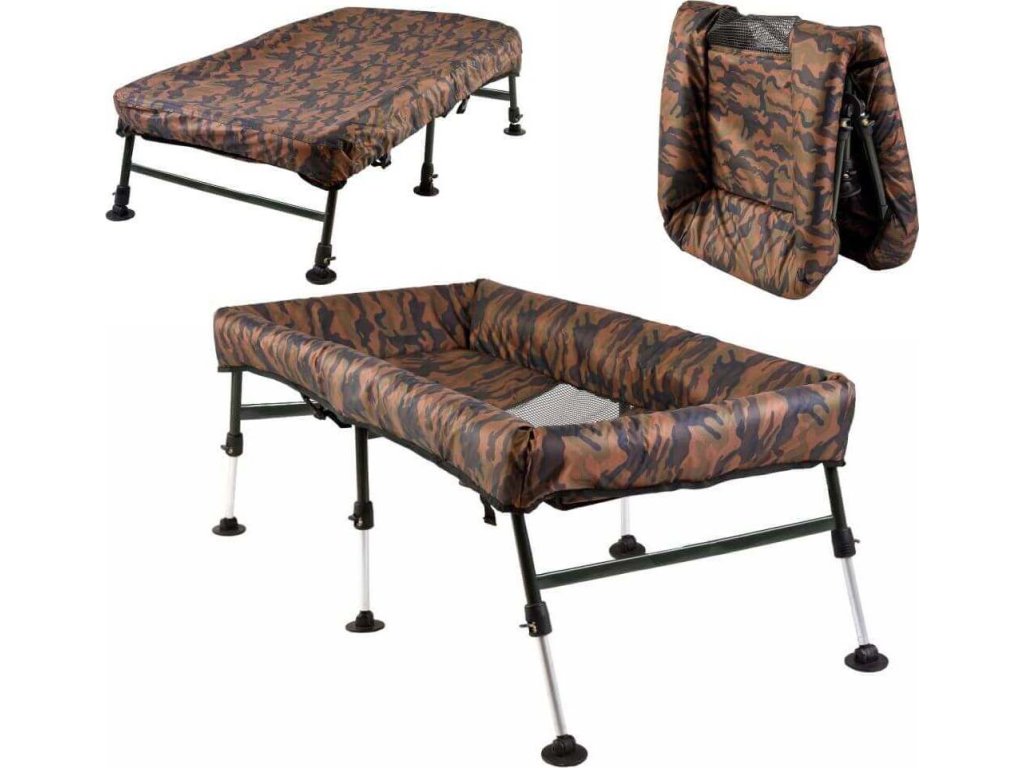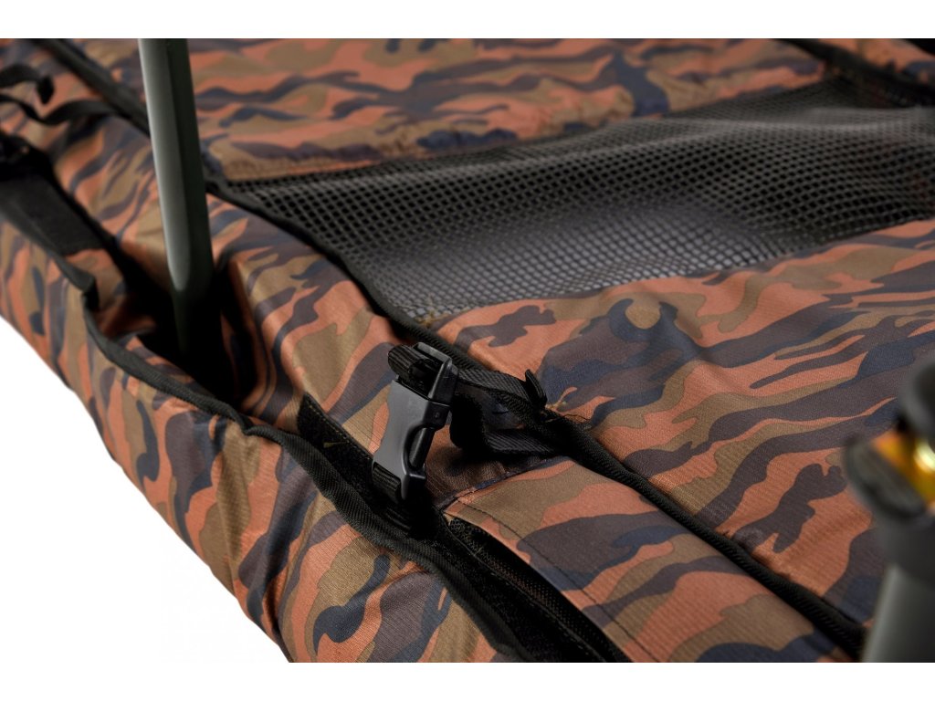 ZFISH představuje nový vylepšený model vaničky pod opravdu velké kapry a amury jak jinak než v oblíbeném Camo vzoru. Tato podložka spolehlivě zajistí ochranu a pohodlí ryby v každém terénu díky 6-ti snadno nastavitelným nohám. Základní rám této vaničky je velmi pevný a robustní a samotný vnitřek včetně boků vaničky je měkký a bohatě polstrovaný pro maximální ochranu a pohodlí opravdu velkých úlovků. Součástí podložky je samozřejmě i přehoz, který slouží k přikrytí a zklidnění ryb. Dno je ve středu vaničky opatřeno pogumovanou síťkou, která zajišťuje jednoduchý odtok přebytečné vody, rybu nepoškodí a nenatáhne zápach stejně tak jako použité textilie a materiály, které jsou snadno omyvatelné. S touto vaničkou budete připraveni raz dva, protože její přeprava, rozložení, nastavení a zpětné složení je opravdu hračka a zvládne to každý jak se říká s prtem v nose.