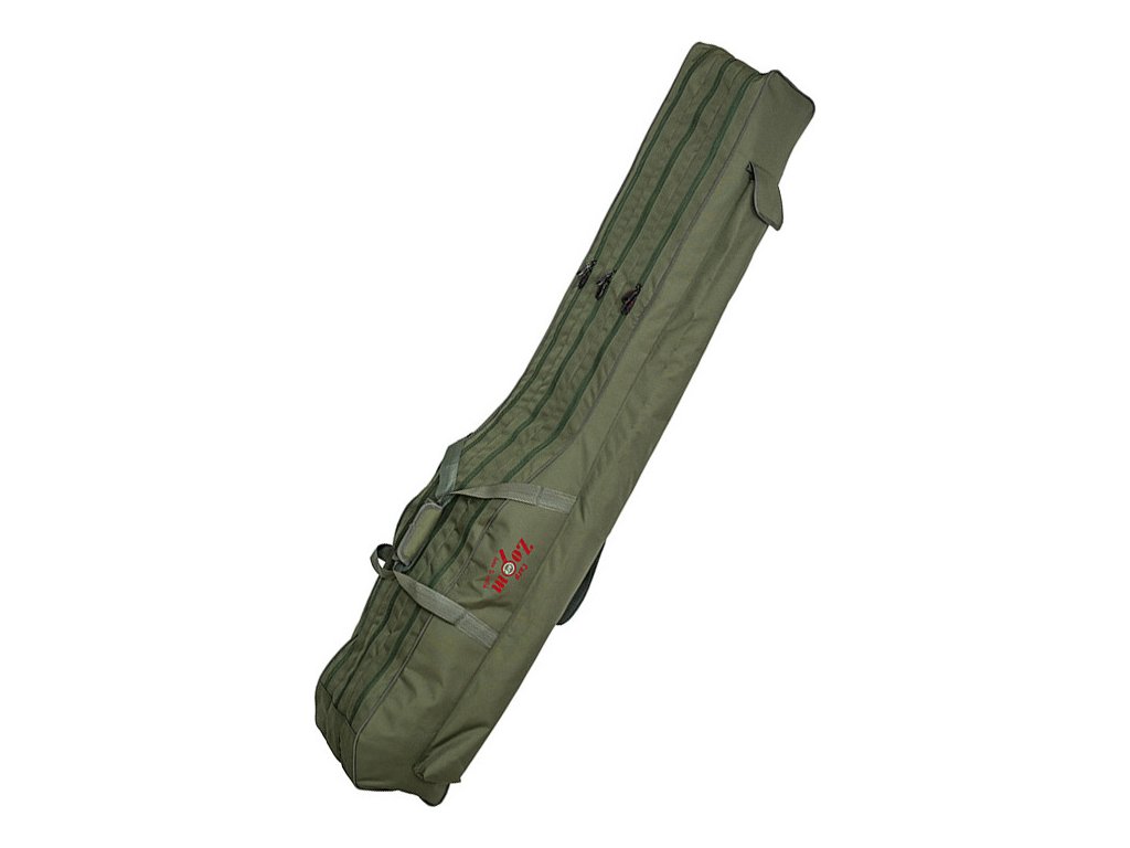 Prostorné tříkomorové pouzdro na udice s popruhem na rameno a rukojetí na nošení v ruce, do kterého bez problémů umístíme i tři sestrojené udice s navijáky. Do 130 cm dlouhé boční kapsy můžeme umístit vidličky a podpěry pod pruty. Dobrá volba pro lovce na feeder.