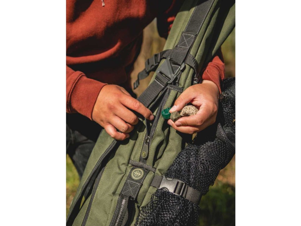 Díky jeho uspořádání je možné uskladnit do hlavní komory až 3 pruty společně s navijáky. Po stranách nalezneme boční kapsy pro další pruty nebo jiné doplňky jako jsou podběráky apod.