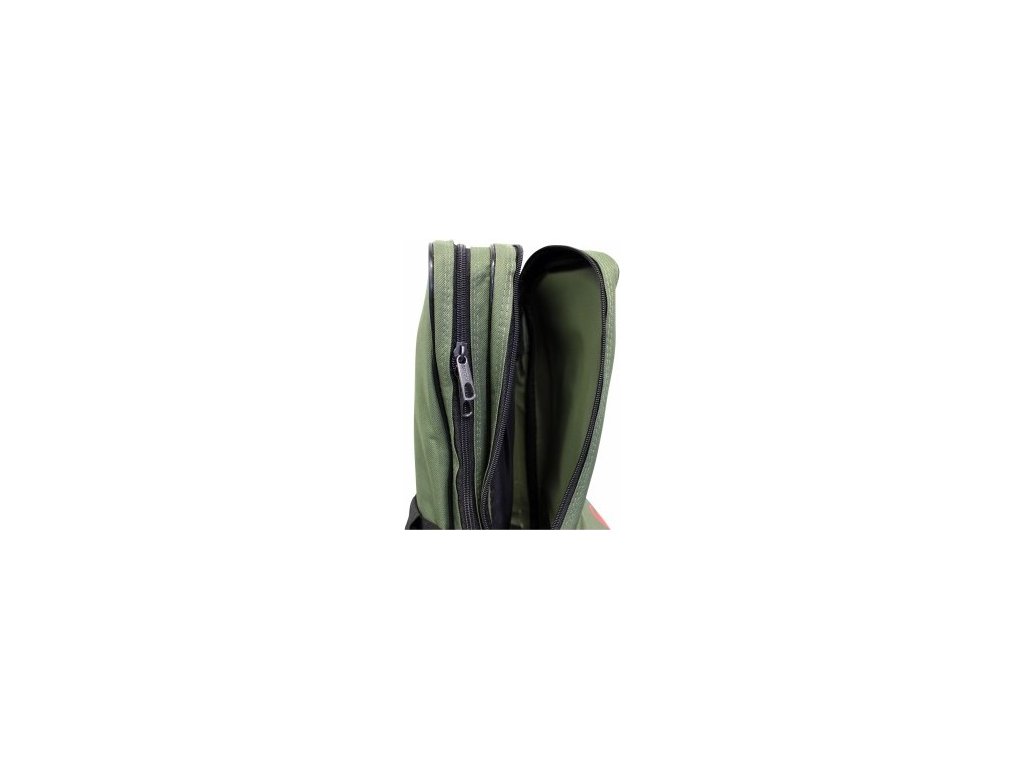 Kvalitní, dvoukomorové pouzdro z nepromokavého a snadno omyvatelného materiálu pro bezpečnou přepravu teleskopických prutů s navijáky i ostatním příslušenstvím. Součástí pouzdra jsou dvě oddělené komory na pruty s navijáky a jedna dlouhá boční, nepromokavá kapsa na podběrák a vidličky. Je možné ho přenášet jak v ruce tak na zádech. Ramenní popruh má nastavitelnou délku. Pouzdro je opatřeno kvalitními, dvoucestnými zipy.