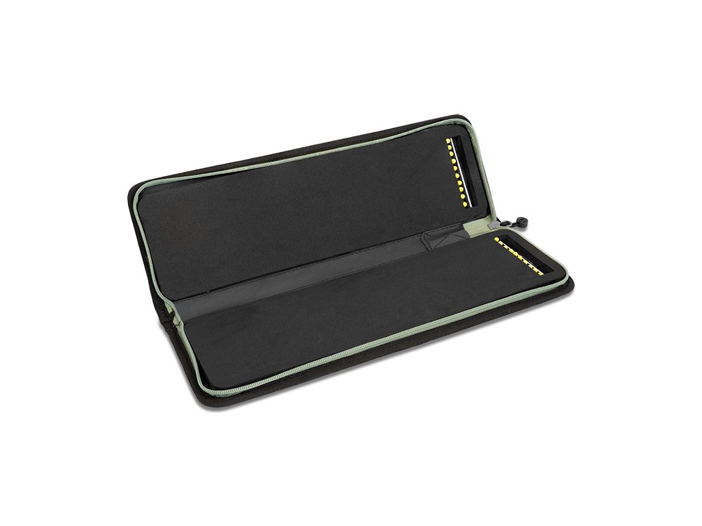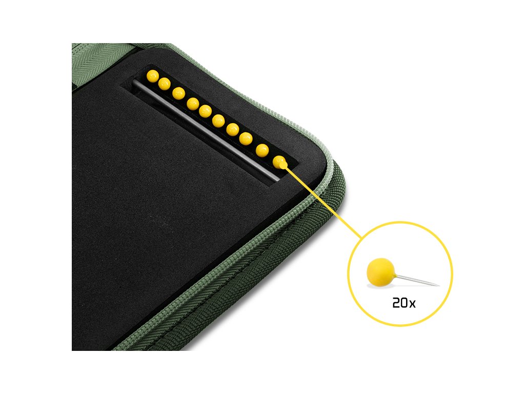 Exkluzivní série Delphin Space je označení pro exkluzivní sérii tašek z dílny Delphin, která se vyznačuje špičkovým zpracováním, kvalitními zipy, ale zejména výjimečným designem s použitím C2G kamufláže. Delphin Rig LOONG SPACE C2G je nové prodloužené pouzdro, díky kterému přejdete na vyšší úroveň organizace a ochrany vašich dlouhých návazců. Díky tomuto pouzdru už nikdy nebudete ztrácet čas rozplétáním uzlů nebo zdlouhavým navazováním nových návazců u vody právě v době vysoké aktivity ryb. Jak již název napovídá, pouzdro je určeno k uložení připravených návazců až do délky 38cm, které budete mít vždy rovné a připravené k okamžitému použití! Pouzdro je jednoduché konstrukce a jeho vnitřek je tvořen odolným tvrzeným molitanem se dvěma výřezy. Ve výřezech se nacházejí ocelové tyčky pro zachycení návazcových háčků. Pro napnutí a uchycení návazců o molitan je pouzdro vybaveno 20 špendlíky, které umožňují mít vždy dostatečné množství připravených návazců, což ocení jak začínající rybáři, tak zkušení závodníci. Z vnější strany je pouzdro vyztužené a potažené odolným materiálem. Pouzdro je osazeno zipem s kovovým běžcem, na kterém je stylový držák s logem Delphin. Technické parametry: Rozměry: 43 x 14 x 4cm Kapacita pouzdra: 20 ks návazců o max. délce cca 38cm Stylová patentovaná kamufláž z dílny značky Delphin pod označením C2G má mnoho podob a úhlů pohledu. Přesně tak i její název, který můžeme volně přeložit jako Carpath 2. generace, což přímo odkazuje na jejího předchůdce, ale můžeme jej číst i jako Carpath to Green, tedy přechod myšlenky Carpathu do zelené barvy. Její jedinečnost a nezaměnitelnost spočívá v prvcích, ze kterých je vytvořena. Na první dojem jde o kamufláž tvořenou třemi různými odstíny zelené. Všechno se však změní při detailnějším pohledu, kdy si všimnete siluety kaprů, komponent kaprařské montáže a log značky Delphin spolu s označením C2G. Díky tomuto neopakovatelnému provedení se vaše rybářská výbava okamžitě stane jedinečnou a maximálně originální.