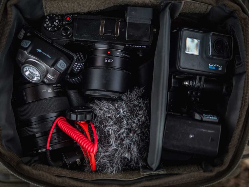 Praktické pouzdro do které bezpečně uložíte fotoaparát, powerbanku, světlo, čelovku a jinou elektroniku. Vrchní stolek lze využít jako stojánek na telefon.