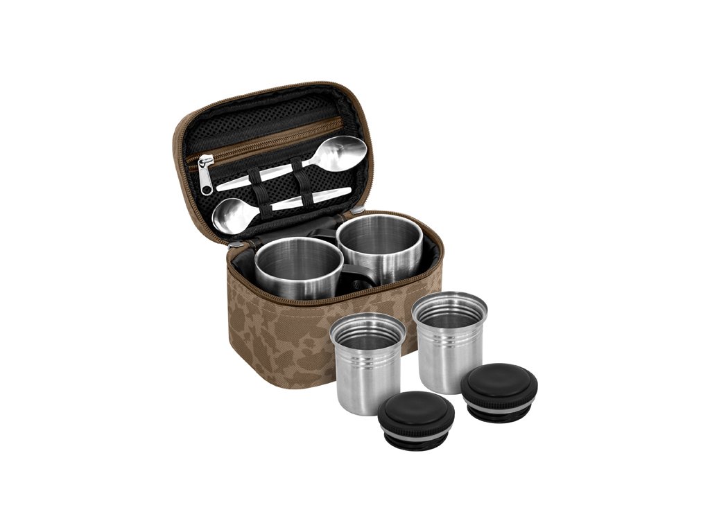 Rozměrem malý, obsahem velký - takový je Delphin COTEA. Produkt s malými transportními rozměry, díky čemuž nezabere ve výbavě téměř žádné místo. Přesto ukrývá sadu, která potěší každého, kdo si u vody rád vychutná dobrou kávu nebo teplý čaj. COTEA obsahuje dva kvalitní nerezové hrnky, dvě čajové lžičky a také dvě uzavíratelné nerezové nádobky, které poslouží například na cukr a kávu. Samotná taštička disponuje malou síťovanou kapsou, která bez problémů pojme dostatečnou zásobu čajových sáčků. Navíc je opatřena kvalitními zipy, přičemž ten vnější je vybaven praktickým držákem s logem firmy Delphin. COTEA je designované v oblíbené CARPATH kamufláži s efektním piktogramem definujícím využití tohoto zajímavého produktu. Sada obsahuje: - základní tašku - 2 čajové lžičky - 2 nerezové hrnky - 2 uzavíratelné nádobky Technické parametry: Vnější rozměr: 17cm x 12cm x 10cm Objem hrnků: 2 dcl Objem nádobek: 1dcl
