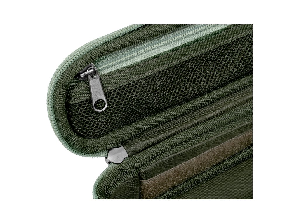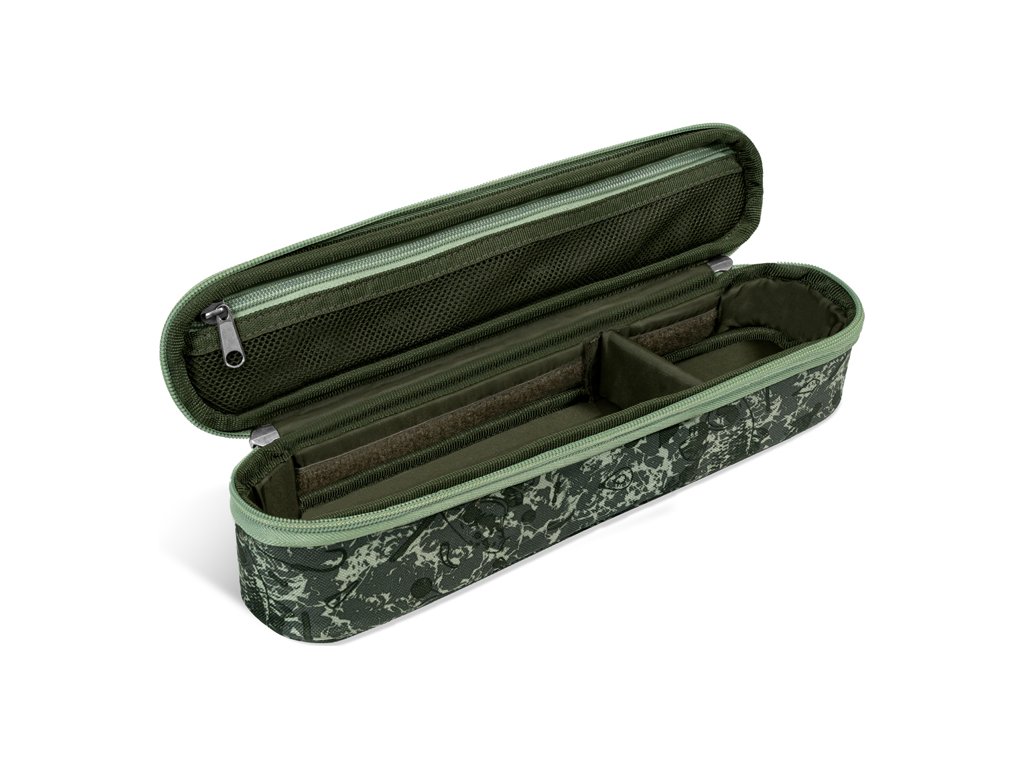 Delphin SPACE je označení pro exkluzivní sérii tašek z dílny značky Delphin. Vyznačuje se špičkovým zpracováním, kvalitními zipy, ale zejména výjimečným designem s použitím C2G kamufláže. Pokud často neumíte najít ve vaší výbavě to správné místo na svítidla jako čelovky, či trubicové bivakové světlo a obvykle je jen tak hodíte mezi ostatní věci, tak jistě oceníte Delphin Light SPACE C2G. Jedná se o důmyslně navrženou tašku, jejíž boční a spodní stěny jsou tvrzené, čímž budou vaše svítidla vždy důkladně chráněna před znehodnocením či nechtěným zapnutím. Vnitřní prostor lze přizpůsobit pomocí odnímatelné přepážky na suchý zip a je tedy jen na vás jak si jej upravíte na základě toho, co uvnitř chcete přenášet. Polstrované víko je zevnitř opatřeno praktickou síťovou kapsou na zip, do které můžete uložit další drobné příslušenství ke svítidlům jako baterky, konektory či nabíjecí kabely. Technické parametry: Vnější rozměry: 35x8x7cm Rozměr vnitřní kapsy: 32x6 cm Stylová patentovaná kamufláž z dílny značky Delphin pod označením C2G má mnoho podob a úhlů pohledu. Přesně tak i její název, který můžeme volně přeložit jako Carpath 2. generace, což přímo odkazuje na jejího předchůdce, ale můžeme jej číst i jako Carpath to Green, tedy přechod myšlenky Carpathu do zelené barvy. Její jedinečnost a nezaměnitelnost spočívá v prvcích, ze kterých je vytvořena. Na první dojem jde o kamufláž tvořenou třemi různými odstíny zelené. Všechno se však změní při detailnějším pohledu, kdy si všimnete siluety kaprů, komponent kaprařské montáže a log značky Delphin spolu s označením C2G. Díky tomuto neopakovatelnému provedení se vaše rybářská výbava okamžitě stane jedinečnou a maximálně originální.