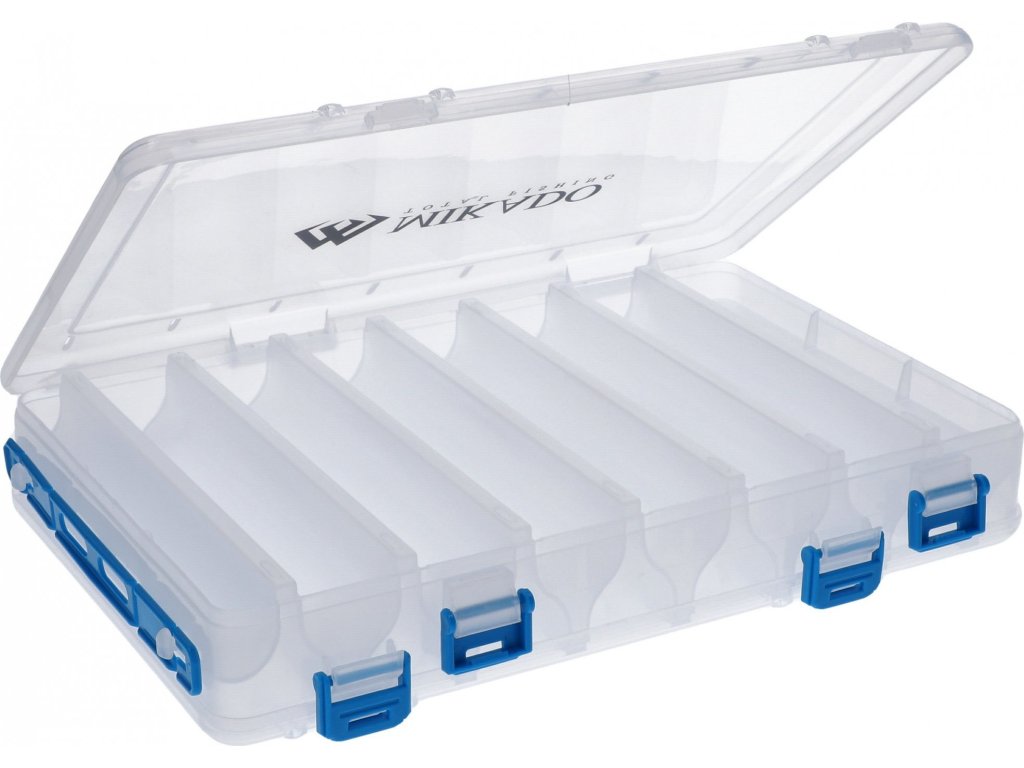 Velmi praktická oboustranná krabička na příslušenství, vyrobená ze silného plastu s pevnými západkami. Průhledné provedení umožňuje snadné vyhledání nástrah; nastavitelné přihrádky umožňují individuální uspořádání.