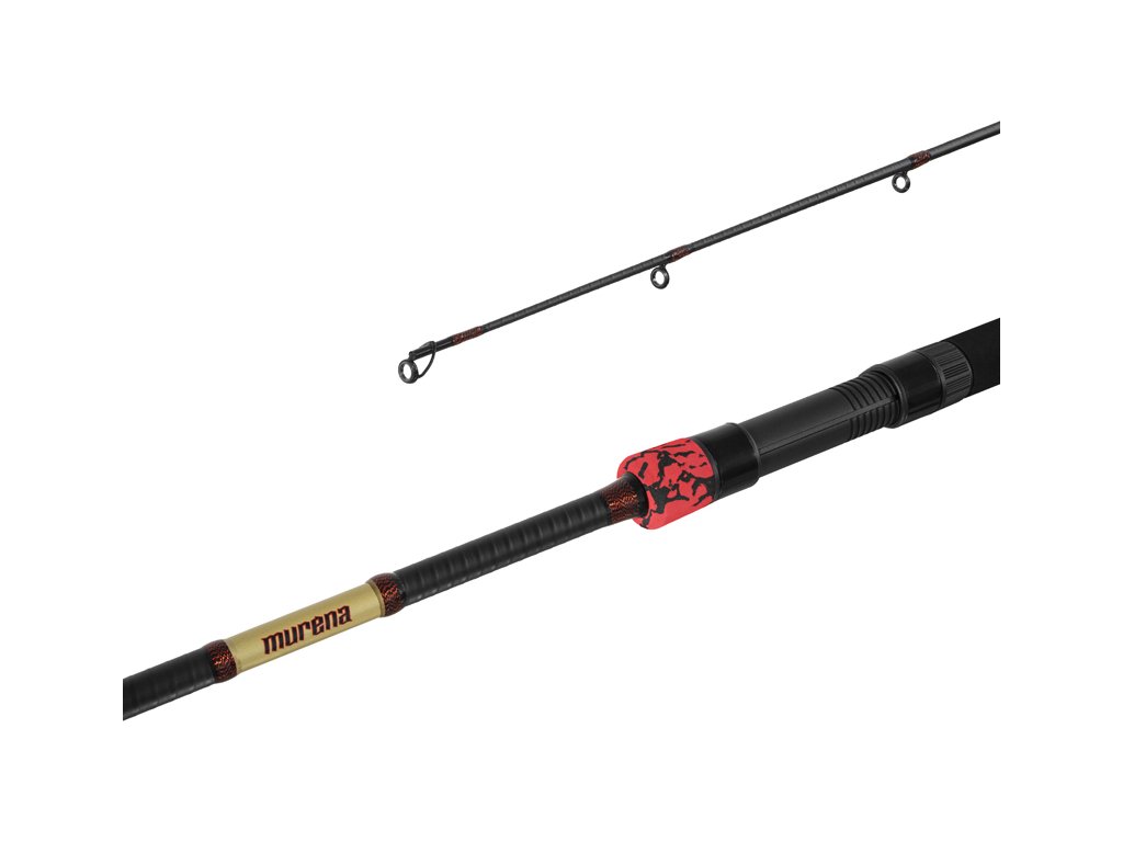 Po úspěšné řadě MURENA jsme si připravili speciál, který jsme zesílili a udělali tak novou generaci s názvem MURENA POWER. Excelentně tenký blank s vrhací zátěží až 125g!! předurčuje tento prut pro ty největší výzvy při lovu dravců. Plná rukojeť z vytvarované EVA pěny s červeno-černou koncovkou je přizpůsobena těžké přívlači. Díky takovému provedení rukojeti a použitého blanku se do prutu můžete pořádně opřít při nahazování ale i zdolávání, a tím posunout level lovu na vyšší úroveň. Blank prutu v matné černé barvě je zpevněn vinutím po celé délce, čímž je ještě rychlejší, razantnější při záseku a odolnější vůči poškození. Pokud jste dosud hledali pravého spolubojovníka, který vás vždy podrží na vycházkách za velkými dravci, je tady! Prut, který se nezalekne ničeho! MURENA POWER! Pro lov ze člunu bychom doporučili dvě verze 210cm, 240cm a pro lov ze břehu jsou vhodnější volbou pruty v délkách 270cm a 300cm. Technické parametry: Model: 210cm/125g Počet dílů: 2 Průměr blanku nad rukojetí: 10,9mm Počet oček: 7 Transportní délka: 110cm Hmotnost: 210g Rukojeť: EVA pěna> Délka rukojeti (od spodní části prutu po střed sedla): 45cm Model: 240cm/125g Počet dílů: 2 Průměr blanku nad rukojetí: 12,2mm Počet oček: 8 Transportní délka: 125cm Hmotnost: 242g Rukojeť: EVA pěna Délka rukojeti (od spodní části prutu po střed sedla): 48cm Model: 270cm/125g Počet dílů: 2 Průměr blanku nad rukojetí: 12,6mm Počet oček: 9 Transportní délka: 140cm Hmotnost: 268g Rukojeť: EVA pěna Délka rukojeti (od spodní části prutu po střed sedla): 50cm Model: 300cm/125g Počet dílů: 2 Průměr blanku nad rukojetí: 13,6mm Počet oček: 10 Transportní délka: 155cm Hmotnost: 306g Rukojeť: EVA pěna Délka rukojeti (od spodní části prutu po střed sedla): 52cm