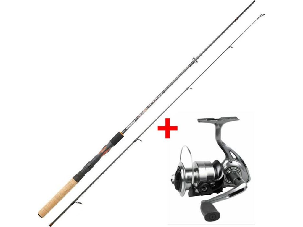 Rybářský set složen z vláčecího dvoudílného prutu Proxima JetSpin a navijáku s přední brzdou Strike 3000FD.