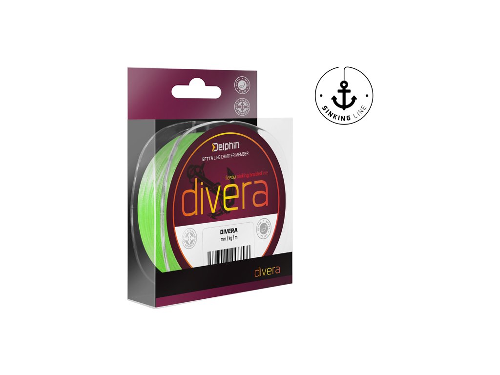 Vynikající šňůra určená především na feeder. Tak jak napovídá název, odvozený od slova diver - potápěč, jde o rychlopotápivou šňůru s excelentními vlastnostmi. Vyznačuje se svou pevností, odolností a barevnou stálostí. Díky speciální povrchové úpravě snadno prochází očky prutu a je vhodná i na daleké nahazování při větší zátěži. DIVERA drží velmi dobře v uzlu a nedochází u ní k efektu prokluzování. Výborná 4+1 vláknová šnúra, která uspokojí každého vyznávače feederu. MM/LBS: 0.08mm/8lbs, 0.10mm/10lbs, 0.12mm/12lbs