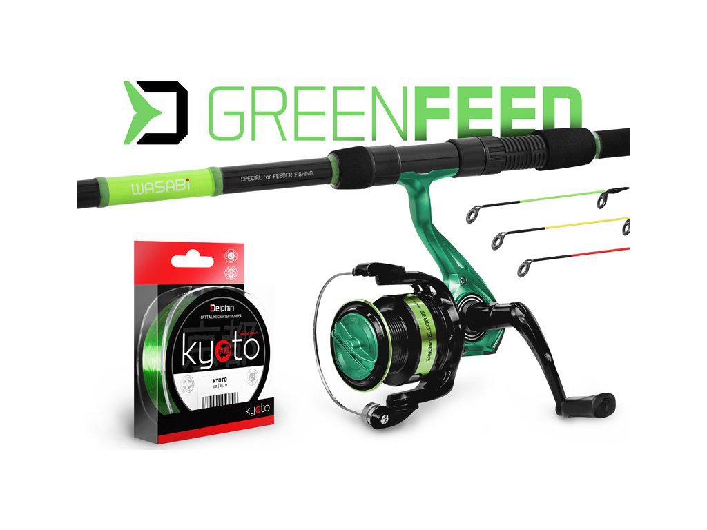 Pokud se neumíte rozhodnout, jak si zkombinovat spolehlivou feederovou sestavu, tak přesně pro vás je zde feederový set Delphin GreenFEED. Set se skládá z třídílného prutu Delphin WASABI Feeder NXT, blank je vyroben z ideálního poměru kompozitních materiálů. Rukojeť z EVA pěny padne do ruky při zdolávání i nahazování. Akce prutu je příjemná a bonusem jsou očka s keramickou výplní. K prutu jsou samozřejmě přibaleny také tři náhradní špičky (1x Light, 1x Medium, 1x Heavy). Svým zeleno-černým provedením dokonale zapadne do setu naviják Delphin ELIXIR. Tělo z lehkého kompozitního materiálu zaručuje dlouhou životnost. Kuličková ložiska v počtu 3+1 spolu s převodovým poměrem 5,0:1 a mechanismem s vyváženým rotorem zaručí tichý a plynulý chod s důkladným ukládáním vlasce. Kapacita cívky je dostatečná k dané rybolovné technice, při průměru vlasce 0,18mm se vejde na cívku až 275m vlasce. Samozřejmě, aby byl set kompletní, tak nesmí chybět vlasec KYOTO s minimální roztažností, což vám zaručí rozeznat záběr i u těch nejopatrnějších ryb. Feederový set potěší široké spektrum rybářů, kteří se věnují rybolovné technice feeder. Technické parametry: Feederový set Delphin GreenFEED 300cm/100g + 3T + 0,261mm obsahuje: Prut Delphin WASABI Feeder NXT / 3 díly | 300cm/100g Naviják Delphin ELIXIR 3T | vel. 3000 Delphin KYOTO fluo zelený | 0,261mm 5,7kg 200m Feederový set Delphin GreenFEED 330cm/100g + 3T + 0,261mm obsahuje: Prut Delphin WASABI Feeder NXT / 3 díly | 330cm/100g Naviják Delphin ELIXIR 3T | vel. 3000 Delphin KYOTO fluo zelený | 0,261mm 5,7kg 200m Feederový set Delphin GreenFEED 360cm/100g + 4T + 0,261mm obsahuje: Prut Delphin WASABI Feeder NXT / 3 díly | 360cm/100g Naviják Delphin ELIXIR 4T | vel. 4000 Delphin KYOTO fluo zelený | 0,261mm 5,7kg 200m
