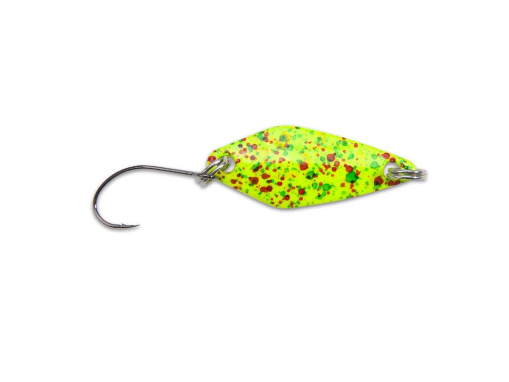 Jedná se o třpytku pro lov jezerních pstruhů. Nástraha má pevné, spolehlivé kroužky, velmi ostrý háček atraktivní barvu a rychlou akci.