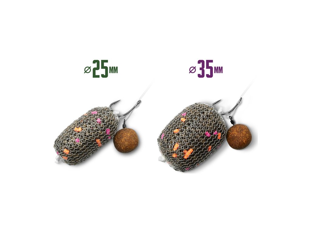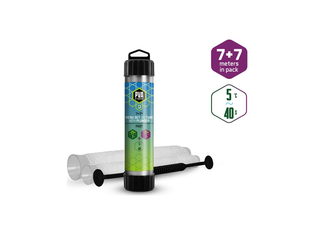 Praktické 2v1 balení, které se skládá z kombinace 25mm a 35mm punčochy s tubami a plničem. PVA punčocha s kratší dobou rozpadu je ideální pro lov během chladnějších měsíců, nebo při lovu v mělčích hloubkách, kde montáž klesá kratší ke dnu. Jedná se o vysoce kvalitní produkt, při kterém díky důkladnému pletení nedochází ke svévolnému trhání punčochy a zároveň se výborně plní i velmi jemnými částicemi, čímž budete moci spolu s nástrahou poslat do vody i maximálně atraktivní návnadu přímo na montáži. Součástí balení jsou dvě tuby a tlouk, které umožňují snadné plnění punčochy vnadící směsí. PVA punčocha se po čase přímo úměrném teplotě vody rozpustí a tak uvolní krmnou směs v bezprostřední blízkosti nástrahy, čímž výrazně zvýší její atraktivnost pro kaprovité ryby. Upozornění: PVA produkty jsou vodou rozpustné, manipulujte s nimi proto jen se suchýma rukama, aby nedošlo k jejich deformaci či poškození. Technické parametry: Průměr: 25mm(úzká), 35mm(široká) Délka: 7+7m Doba rozpustnosti: cca 40s/5°C voda