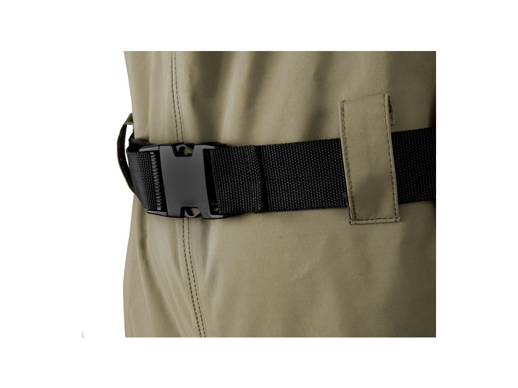 Prsačky HRON jsou vysoce spolehlivým modelem z dílny značky Delphin. Vyznačují se výbornými vlastnostmi a velmi kvalitním provedením. Každý detail je zpracován dokonale precizně. Moderní materiál zaručuje naprostou voděodolnost a zároveň pohodlné nošení díky nízké hmotnosti. Navíc uvnitř prsaček se nachází všitá síťka, která snižuje přímý dotyk kůže a vodotěsného materiálu, a tím výrazně omezuje pocení. Obrovským bonusem který je nevídaný v této kategorii je neoprenová výztuha kolen, což umožňuje například i velmi komfortní klečení ve vodě. Kromě standardních nastavitelných popruhů na ramena, disponuje tento model také vyjímatelným páskem, což umožní ještě lepší přizpůsobení postavě rybáře. Gumové holínky s odolnou a stabilní podrážkou vás podrží i v náročnějších podmínkách. Samozřejmostí jsou také výčnělky v oblasti paty pro snadnější vyzouvání. Složení: taslon / PVC