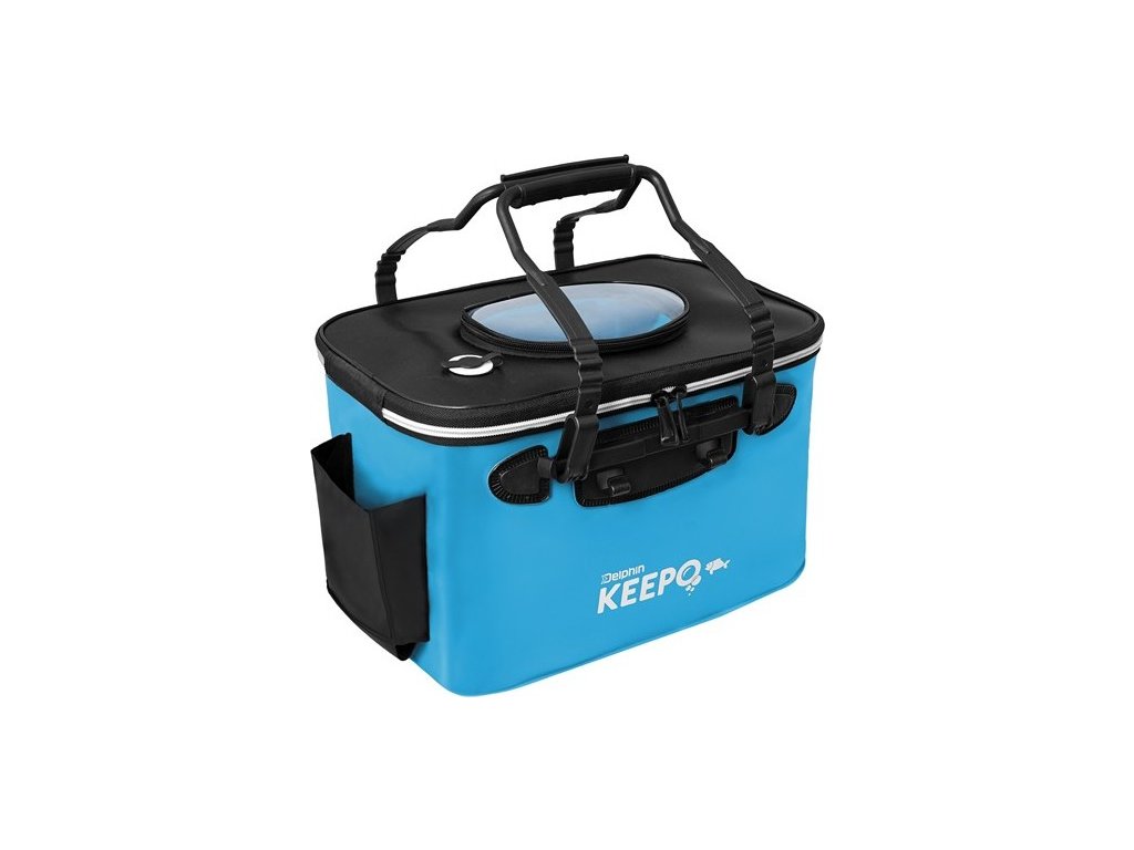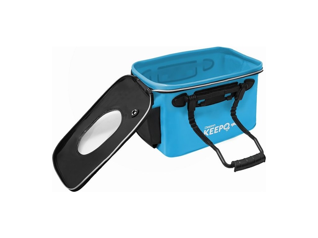 Delphin KEEPO je praktická EVA taška určená především na přechovávání živých nástražních rybek. Jeho vrchní část se otevírá po celém obvodu pomocí zipu. Víko je na vrchní části opatřeno otvorem, který je vyroben ze síťoviny, takže máte dokonalý přehled, co se uvnitř nachází. Otvor se uzavírá jednoduše zipem po jeho obvodu a slouží ke vkládání a vyjímání živé nástrahy. Najdeme zde i malý otvor pro hadičku okysličovače. Okysličování je možné uložit do vnější kapsy, která byla pro tento účel i primárně navržena (např. okysličovače Delphin A-PUMP maxi nebo mini). Taška je vybavena dvěma plastovými úchopy, které je možné zafixovat zasunutím jejich vrchních částí do sebe. Delphin KEEPO je praktická pomůcka pro všechny, kteří potřebují své nástražní rybky přechovat během transportu na lovné místo. Alternativně je možné ji použít i na odkládání různého rybářského příslušenství. Technické parametry: Rozměr: 36cm x 25cm x 22cm Objem: 18,5l
