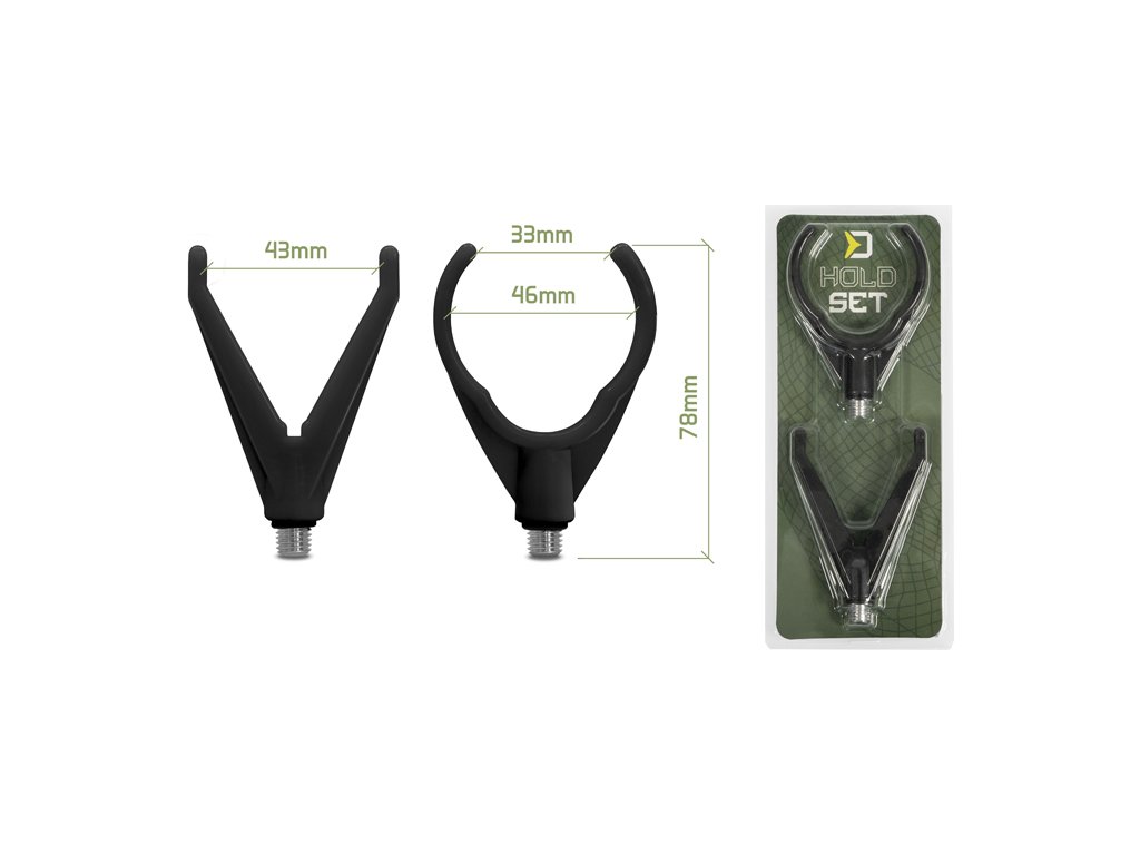 Sada držáků prutu, která se skládá z předního a zadního držáku s univerzálním závitem, pro přichycení k jakýmkoliv vidličkám či stojanům. Držáky jsou vhodné zejména pro feederisty, ale i rybáře, kteří rádi loví na položenou či plavanou. HoldSET je vyroben z odolného plastového materiálu a díky své praktičnosti a ceně jej ocení jak začátečníci tak zkušení rybáři. Zadní držák, navržený ve tvaru písmene U, umožňuje bezpečné uložení prutů s různými průměry rukojetí. Přední držák ve tvaru písmene V je opatřen drážkou, pro plynulý přechod vlasce během záběru.
