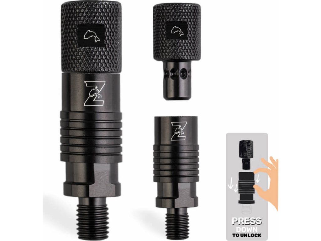 Jedinečná a vychytaná rychlospojka s univerzálním závitem, která funguje s pomocí zámku s kuličkovým ložiskem a speciálního tvaru spoje, který do sebe pasuje a zaručí, že se nerozpojí ani při prudkém záběru do strany. Do horní části spojky jednoduše našroubujte hlásič a spodní část klasicky namontujte na Váš stojan nebo vidličku. Po ukončení rybolovu jednoduše oddělíte a jednotlivé části ponecháte jak na hlásiči, tak na stojanu/vidličce. Při další výpravě stačí jen opět spojit a jste ušetřeni otravného a zdlouhavého šroubování. Spojka je celokovová, kvalitně zpracovaná s černou povrchovou úpravou. Standartní závity pasují na většinu běžných rybářských stojanů a vidliček.