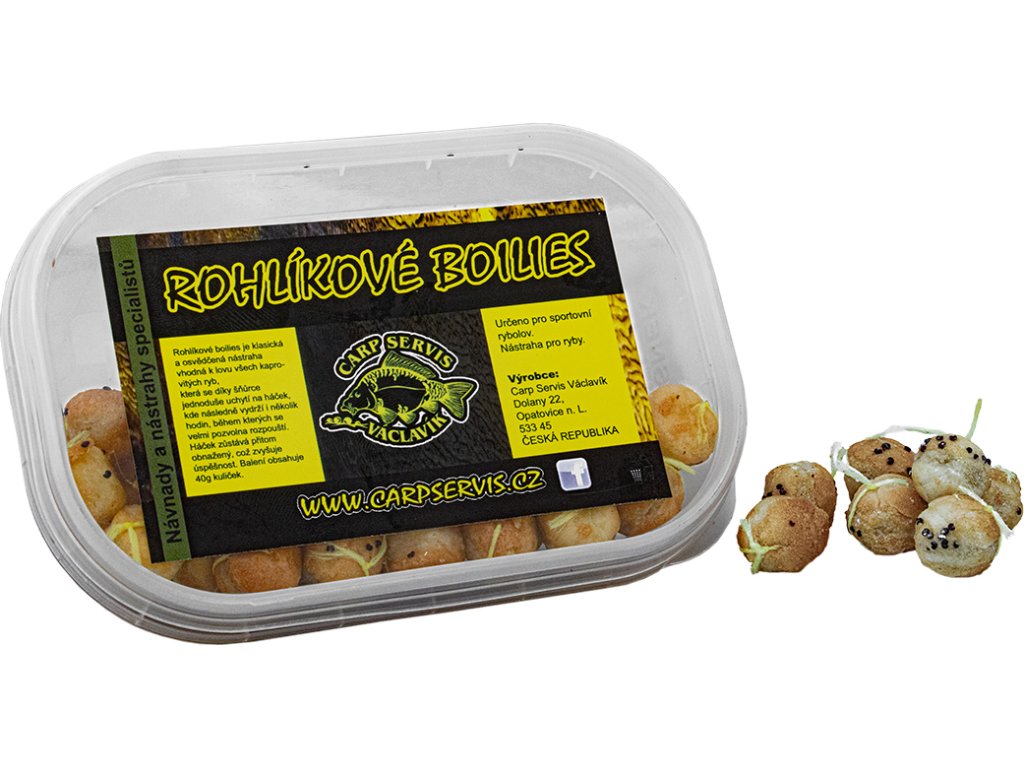 Rohlíkové boilies je klasická a osvědčená nástraha vhodná k lovu všech kaprovitých ryb, která se díky šňůrce jednoduše uchytí na háček, kde následně vydrží i několik hodin, během kterých se velmi pozvolna rozpouští. Háček zůstává přitom obnažený, což zvyšuje účinnost. Balení obsahuje kuličky o velikosti 12 mm.