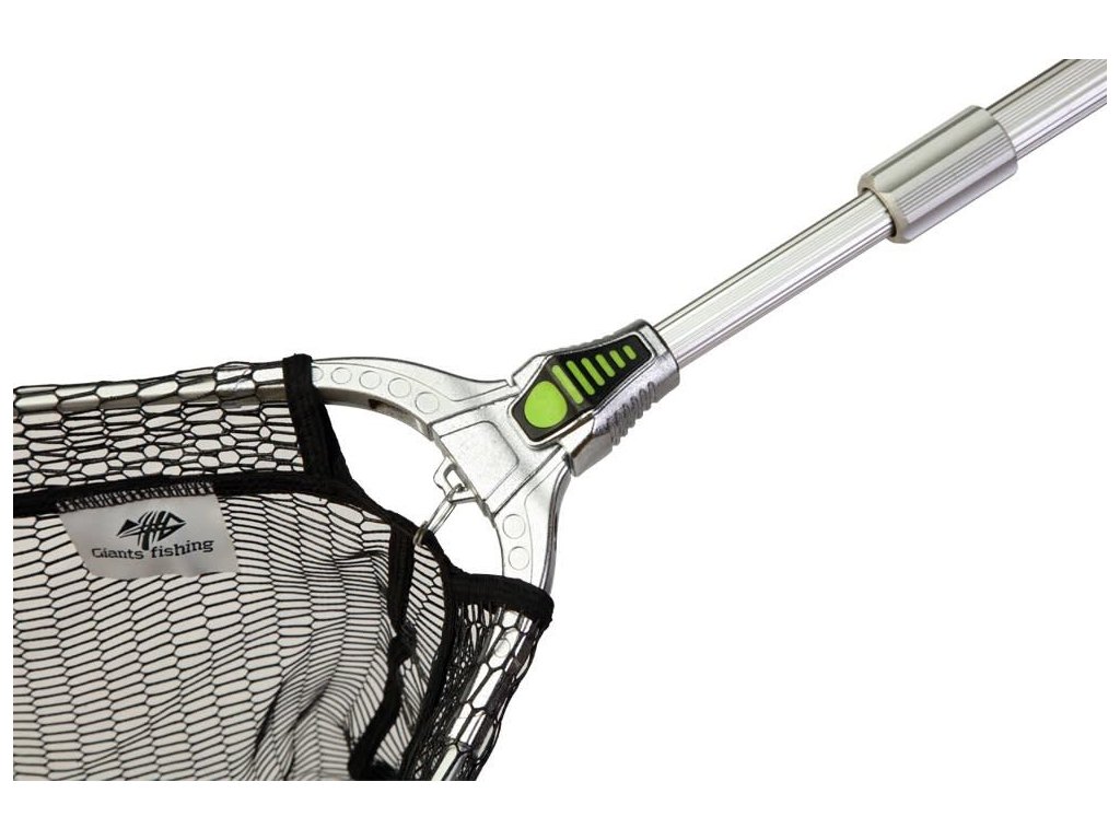Podběrák má ramena vyrobena z kvalitní hliníkové slitiny. Celo hliníková rukojeť, je zakončena plastovým měkčeným madlem a osazena robustní hliníkovou aretací. Kvalitní nylonová síťka má očka o rozměru 8mm a je v pogumovaném provedení. Tato vrcholná řada podběráků Giants Fishing, nezklame ani nejnáročnějšího rybáře!