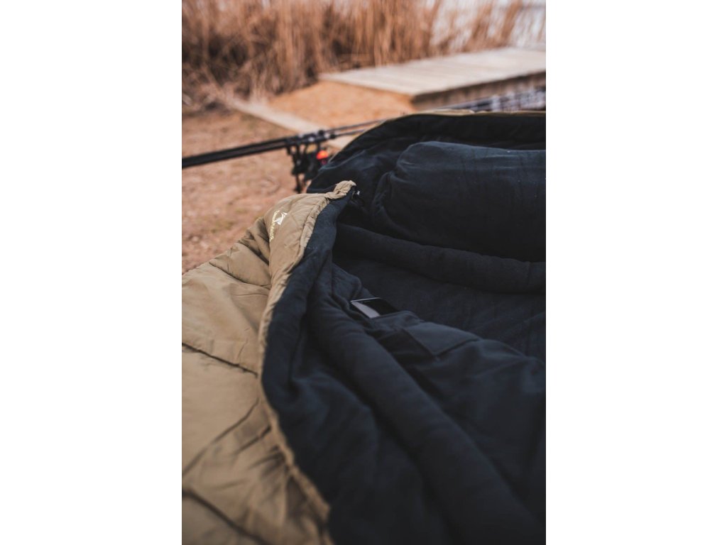 Ve vnitřní části spacího pytle naleznete kapsu na zip, která je určena pro mobilní telefon.