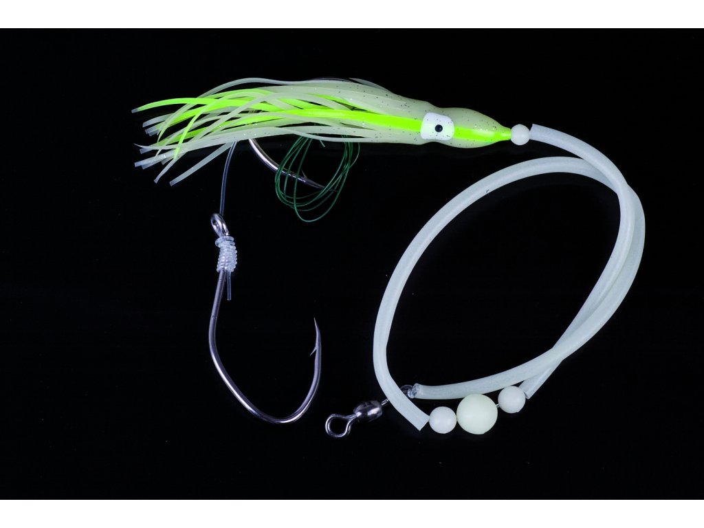 Návazec na mořské mníky. Chobotnice, bužírky i korálky se dají na světle nasvítit. V hloubce 100 až 160 metrů, kde mníky nejčastěji lovíme, je téměř úplná tma. Tento návazec proto láká ryby ze širokého okolí. Na háčky doporučujeme napíchnout filet z makrely, který vám zajistí, že na záběr nebudete dlouho čekat. Součástí balení je EVA Board - pěnová deska na návazce.
