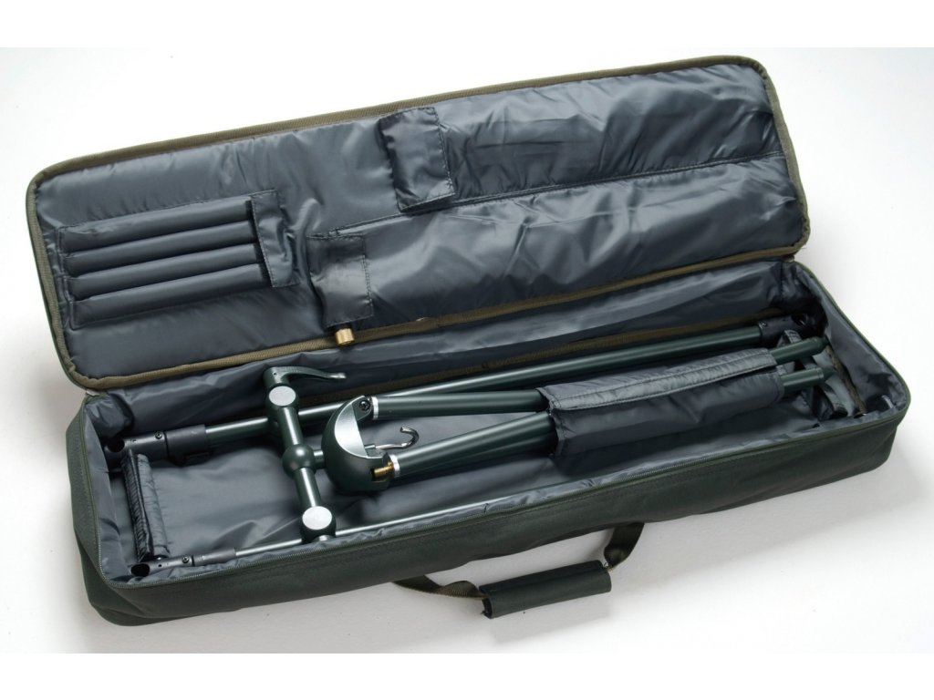 Kvalitní tripod z aluminiové slitiny s masivní, ale velmi skladnou konstrukcí a rozšířenou přední hrazdou (umístění prutů do „V“). Je osazen pevnými plastovými zámky a celokovovým kloubem s dvojitou aretací sklonu. Aretace nohou se provádí lehkým pootočením. V ceně tripodu je luxusní polstrovaný obal!