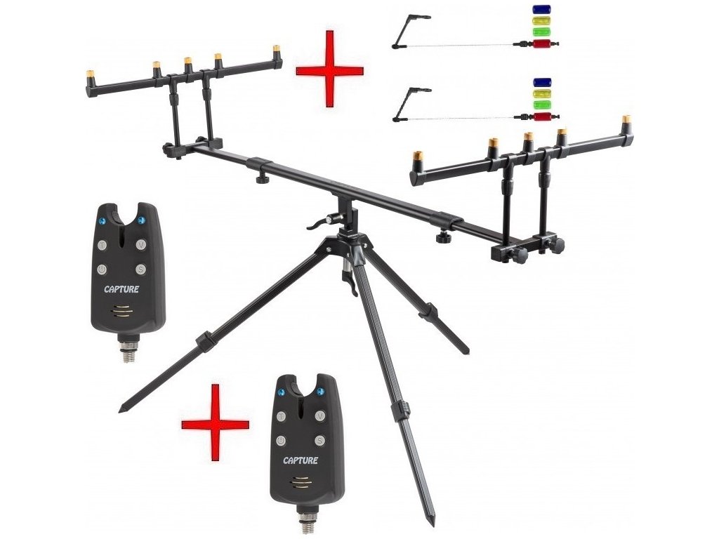 Zdarma ke stojanu obdržíte 2 ks signalizátorů JAF Capture Lynx v hodnotě 799,- Kč! Zdarma ke stojanu obdržíte 2 ks JAF Capture řetízkový indikátor Regular 4v1 hodonotě 238,- Kč! Robustní stojan na rybářské pruty, který je stabilní za každého počasí. Hliníkový stojan, který je určen až pro pět prutů. Vysoká stabilita. Variabilita možností nastavení směru. Rozměry stojanu: Teleskopický centrální rám: délka od 65 do 120 cm Teleskopické nohy: délka od 40 do 70 cm Výškově nastavitelné hrazdy délky 50 cm Hmotnost: 3,8kg Zdarma přepravní taška. ZDARMA 2 ks signalizátorů JAF Capture LYNX: Nový model oblíbených signalizátorů Lynx od belgické firmy JAF Capture nyní v akci 1+1 ZDARMA! Luxusní provedení, které potěší i opravdu náročného rybáře. Představujeme Vám kvalitní řadu signalizátorů záběru, které se vyznačují kvalitním provedením, moderním designem a spolehlivou elektronikou. Základní deska signalizátorů je zalitá v silikonové vrstvě, takže jsou 100% voděodolné a bezchybně tak pracují i za těch nejsilnějších dešťů. pracovní teplota: -30 až +50 °C nastavení citlivosti v 6 režimech nastavení hlasitosti v 6 režimech nastavení tónů v 6 režimech dvě paměťové 25 sec LED diody paměťová funkce zapnutí a vypnutí signalizátoru zdířka pro swinger nebo příposlech provoz na 9V baterii (není součástí balení) protisluzová gumová podložka pod prutem nerezový šroub pro uchycení ke stojanu či vidličceDoplňkové parametry