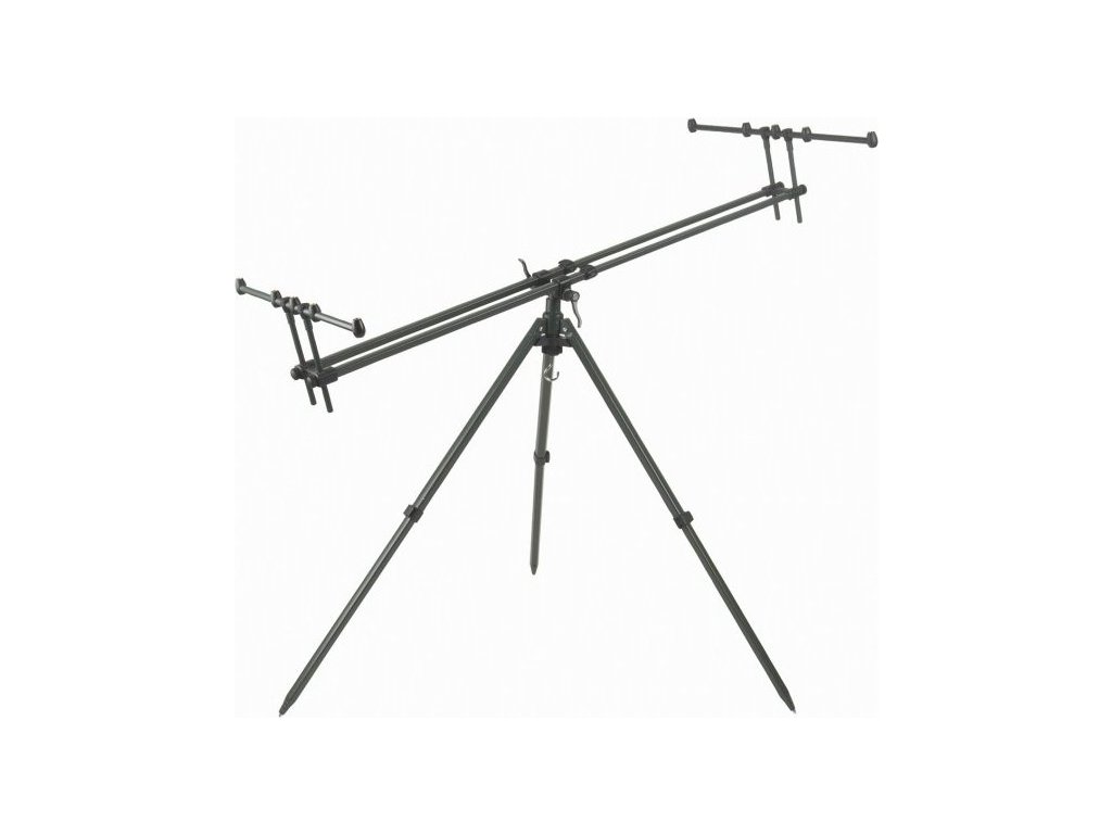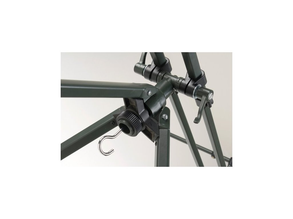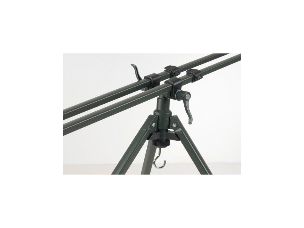 Tripod MonsterNově vyvinutý velký tripod s extrémně pevným středovým uložením, prodlouženými nohami z tuhých profi lů a zvětšeným rozpětím mezi hrazdami. Speciální systém naklápění a posouvání hlavních ramen umožňuje variabilní usazení prutů v různých situacích. Velkou výhodou tripodu jsou úplně nové multifunkční hrazdy s velkou šířkou. Jsou vhodné pro umístění tří nebo čtyř prutů s velkokapacitními navijáky. Materiál hrazdy i pevné sloupky zajišťují stabilitu prutů i v silném větru. Tripod je dodáván v luxusním, polstrovaném obalu.