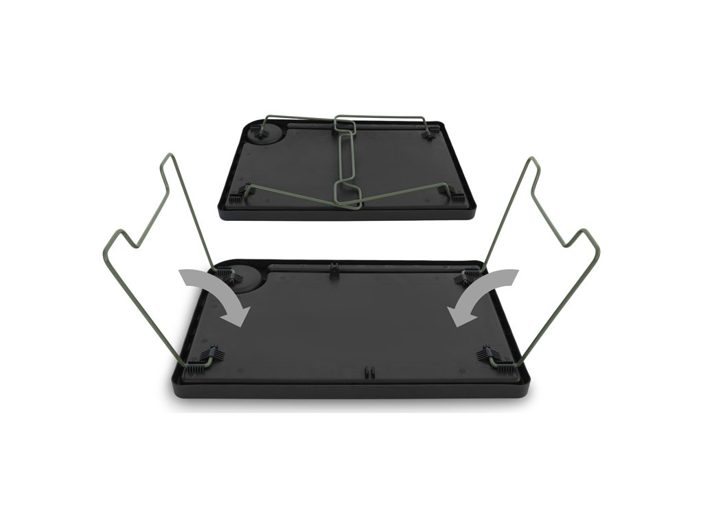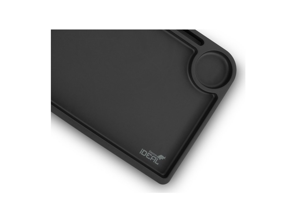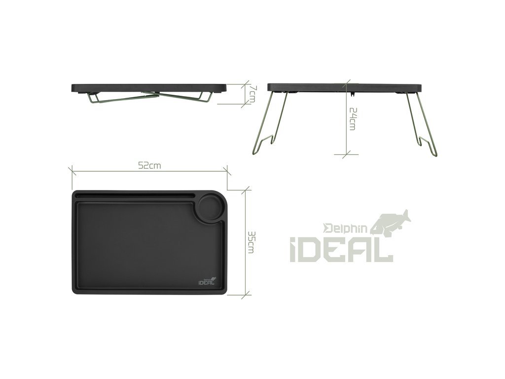 Jak už název napovídá, stolek Delphin iDEAL se stane vaším ideálním společníkem během vašich kaprařských výprav. Tento skládací stolek nabízí vše, co potřebujete – ať už k uschování výbavy v bivaku, nebo při přípravě koncových montáží. Vrchní deska je vyrobena z odolného plastu a po celém obvodu je vybavena zvýšeným okrajem, který účinně zabraňuje nechtěnému padání drobných předmětů ze stolku. Na pracovní ploše se nachází úzká podélná přihrádka, ideální pro bižuterii nebo hotové koncové montáže, které potřebujete mít po ruce a zároveň zamezit volnému pohybu po stole. Pracovní plocha je navíc doplněna o kulatou přihrádku, vhodnou pro odložení sklenice, případně termosky. Stolek disponuje sklápětelnýma nohama, díky čemuž po jejich složení nabývá velmi kompaktní transportní rozměry. Praktické úchyty na spodní straně desky zabezpečují fixaci nohou v rozloženém i složeném stavu, čímž předcházejí jejich nechtěnému pohybu během manipulace nebo přepravy. Technické parametry: Rozměry: 52x35 cm Výška: 24 cm Výška vyvýšeného okraje: 2cm Transportní rozměry: 52x35x7 cm Hmotnost: 910 g