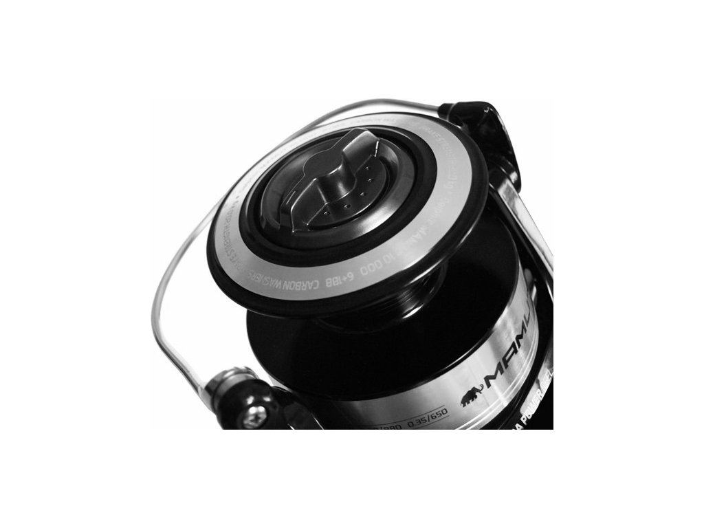 Odolný silový naviják s obrovskou kapacitou. Tu využijete například při lovu sumců, při použití silné šňůry/vlasce, anebo na dalekou kaprovou vyvážku. Díky mohutné kovové cívce nic z toho nebude nejmenší problém. Bezkonkurenčním na tomto navijáku je i fakt, že u v základě je naviják vybavený karbonovými podložkami brzdy s enormní silou až do 20kg. Samozřejmostí je kovová klička s velmi pohodlným madlem, které přesně padne do ruky. Všechny díly navijáku do sebe bezchybně zapadají, nic nemá vůli a vysoce pevné tělo se nekroutí ani při enormním zatížení. Vnitřní mechanizmus je na bázi ozubených koleček, které jsou dimenzované tak, aby vydržely dlouhou dobu bez jakéhokoliv poškození. K tomu přispívá i nízký převodový poměr 4,3:1! Technické parametry: Model: Delphin MAMUT 10000 Kapacita navijáku KAPR: 0.25mm/1250m, 0.30mm/880m, 0.35mm/650m Kapacita navijáku SUMEC: 0.50mm/320m, 0.60mm/220m, 0.70mm/170m Převodový poměr: 4.3:1 Počet ložisek: 6+1 Hmotnost: 690g Model: Delphin MAMUT 12000 XXL Kapacita navijáku KAPR: 0.25mm/1650m, 0.30mm/1150m, 0.35mm/860m Kapacita navijáku SUMEC: 0.50mm/425m, 0.60mm/290m, 0.70mm/210m Převodový poměr: 4.3:1 Počet ložisek: 6+1 Hmotnost: 760g