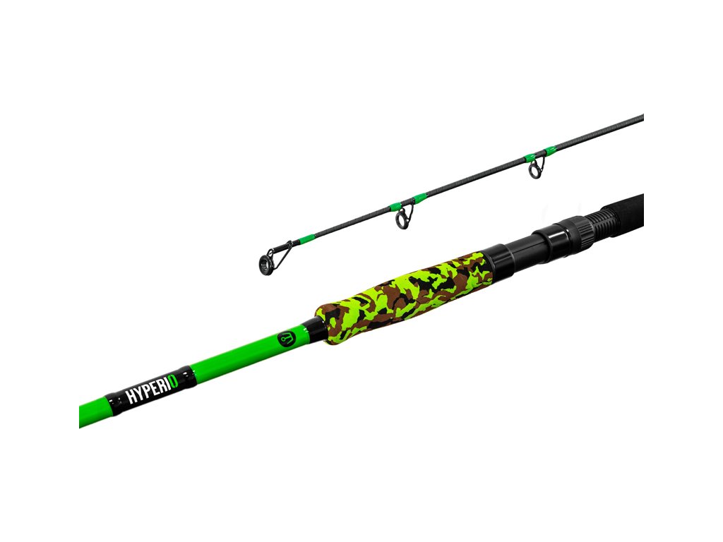 Nová generace prutu HYPERIO je zaměřena na aktivní lov sumců těžkou přívlačí ze břehu nebo z člunu. Novinka vás na první pohled zaujme svým novým a propracovaným designem. Gramáž poskočila na 120g vyztužením blanku a díky technickým inovacím přináší rovnoměrné rozdělení síly. HYPERIO představuje lehký ale silný prut, určený pro vrhání zátěží kolem 120g. Nedělá mu problém sladkovodní, ani mořský rybolov. Postaven byl totiž na vyhrávání soubojů s dravými rybami. Už při navrhování jsme dbali na výjimečně silný blank se zpevňujícím karbonovým opletem PowerWrap, který je velmi pevný a výborně pracuje při nahazování či zdolávání. Zesílená očka prutu jsou vyvázaná s vysokým důrazem na celkovou odolnost a vysoké namáhání. Výplň oček si výborně poradí jak s vlascem, tak i se šňůrou. Model: 180cm / 120g Počet dílů: 2 Průměr blanku nad rukojetí: 10,44mm Počet oček: 7 Transportní délka: 95cm Hmotnost: 196g Rukojeť: dělená, EVA pěna Délka rukojeti (od spodní části prutu po střed sedla): 43,5cm Model: 210cm / 120g Počet dílů: 2 Průměr blanku nad rukojetí: 11,50mm Počet oček: 8 Transportní délka: 111cm Hmotnost: 221g Rukojeť: dělená, EVA pěna Délka rukojeti (od spodní části prutu po střed sedla): 46,5cm Model: 240cm / 120g Počet dílů: 2 Průměr blanku nad rukojetí: 12,87mm Počet oček: 9 Transportní délka: 125cm Hmotnost: 244g Rukojeť: dělená, EVA pěna Délka rukojeti (od spodní části prutu po střed sedla): 48,5cm Model: 270cm / 120g Počet dílů: 2 Průměr blanku nad rukojetí: 13,40mm Počet oček: 10 Transportní délka: 141cm Hmotnost: 274g Rukojeť: dělená, EVA pěna Délka rukojeti (od spodní části prutu po střed sedla): 50,5cm
