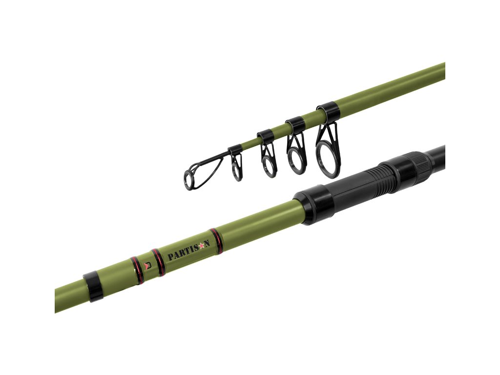 Teleskopický kaprařský prut, který je na první pohled nezaměnitelný díky svému specifickému provedení. Blank je navržen v matné vojenské zelené a černé barvě, doplněný o jemné červené prvky. Získává tak velmi decentní ale zato výjimečný vizuál, který si určitě oblíbíte. Jednotlivé segmenty spolu tvoří spolehlivý štíhlý blank, který jako celek pracuje opravdu excelentně a poradí si i s rybami z vyšší váhové kategorie. Každý díl je na konci osazen pevným očkem s odolnou SIC výplní a nebude tak problém při použití různých vlasců či dokonce šňůr. Naviják spolehlivě usadíte do klasického ale zato osvědčeného DPS sedla. Kónicky rozšířená rukojeť z EVA pěny je navržena tak, aby dokonale pasovala do dlaně a umožňovala pohodlné nahazování či manipulaci s prutem. Pokud se rozhodnete pro Delphin PARTISAN, určitě oceníte také kompaktní transportní rozměry, charakteristické pro teleskopické pruty. Kromě toho však do své výbavy získáte jedinečný a originální prut, kterým u vody vzbudíte zájem. Jelikož se teleskopický prut skládá z více dílů a spojů, může být tímto celková délka prutu ovlivněna +/-3% oproti udávané. Technické parametry: Model: 240cm / 50g Počet dílů: 5 Počet oček: 4 Průměr blanku nad rukojetí: 15mm Hmotnost: 180g Transportní délka: 88cm Rukojeť: dělená, EVA pěna Délka rukojeti (od spodní části prutu po střed sedla): 48cm Model: 270cm / 80g Počet dílů: 5 Počet oček: 4 Průměr blanku nad rukojetí: 15mm Hmotnost: 200g Transportní délka: 88cm Rukojeť: dělená, EVA pěna Délka rukojeti (od spodní části prutu po střed sedla): 50cm Model: 300cm / 100g Počet dílů: 6 Počet oček: 5 Průměr blanku nad rukojetí: 18mm Hmotnost: 260g Transportní délka: 89cm Rukojeť: dělená, EVA pěna Délka rukojeti (od spodní části prutu po střed sedla): 53cm Model: 330cm / 110g Počet dílů: 6 Počet oček: 5 Průměr blanku nad rukojetí: 20mm Hmotnost: 300g Transportní délka: 90cm Rukojeť: dělená, EVA pěna Délka rukojeti (od spodní části prutu po střed sedla): 55cm Model: 360cm / 120g Počet dílů: 6 Počet oček: 5 Průměr blanku nad rukojetí: 21mm Hmotnost: 350g Transportní délka: 90cm Rukojeť: dělená, EVA pěna Délka rukojeti (od spodní části prutu po střed sedla): 57cm