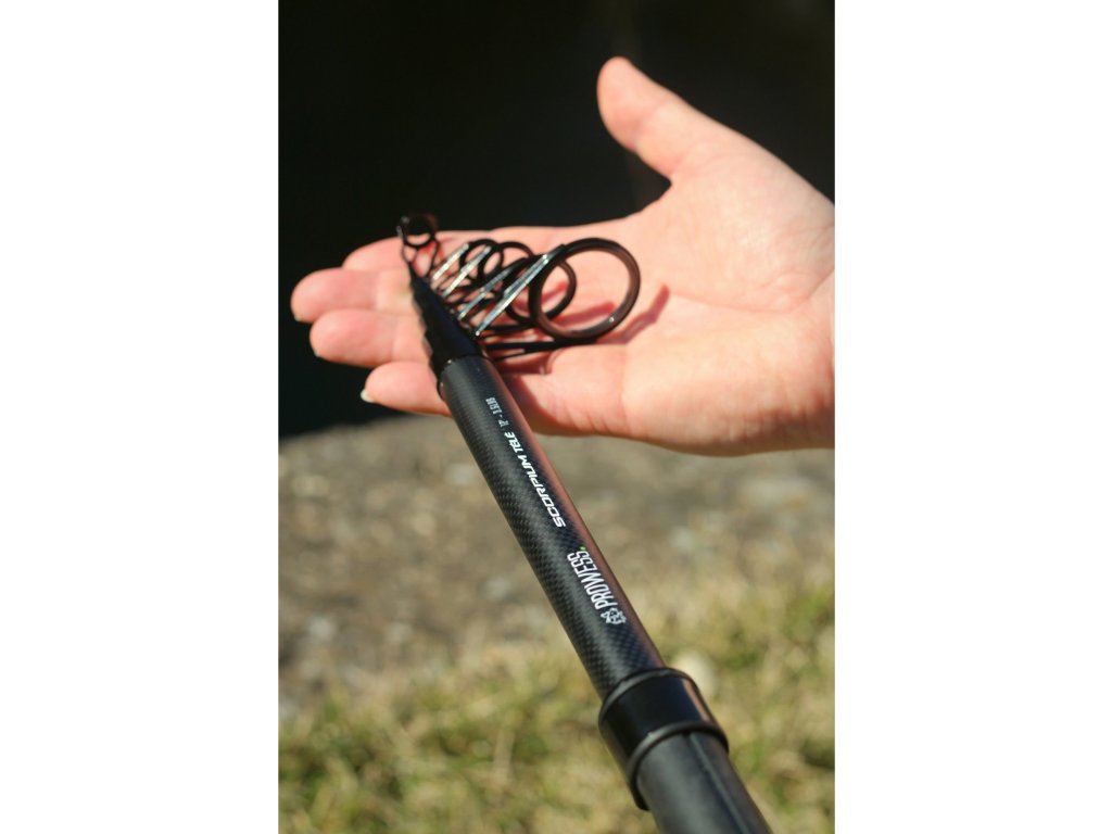 Teleskopický prut řady SCORPIUM vyroben z vysoce odolného uhlíku, který přichází ve 2 délkách, 3,60 m a 3,90 m. Podařený blank, který v sobě skrývá půvab, doplněný pevností a odolností.