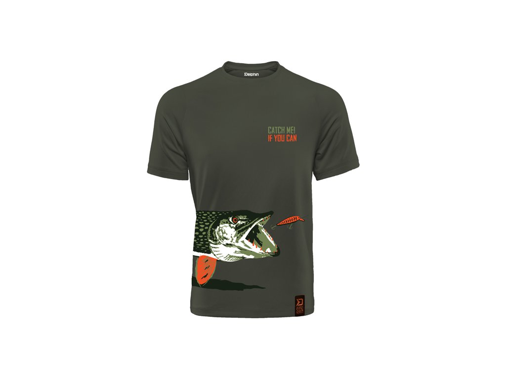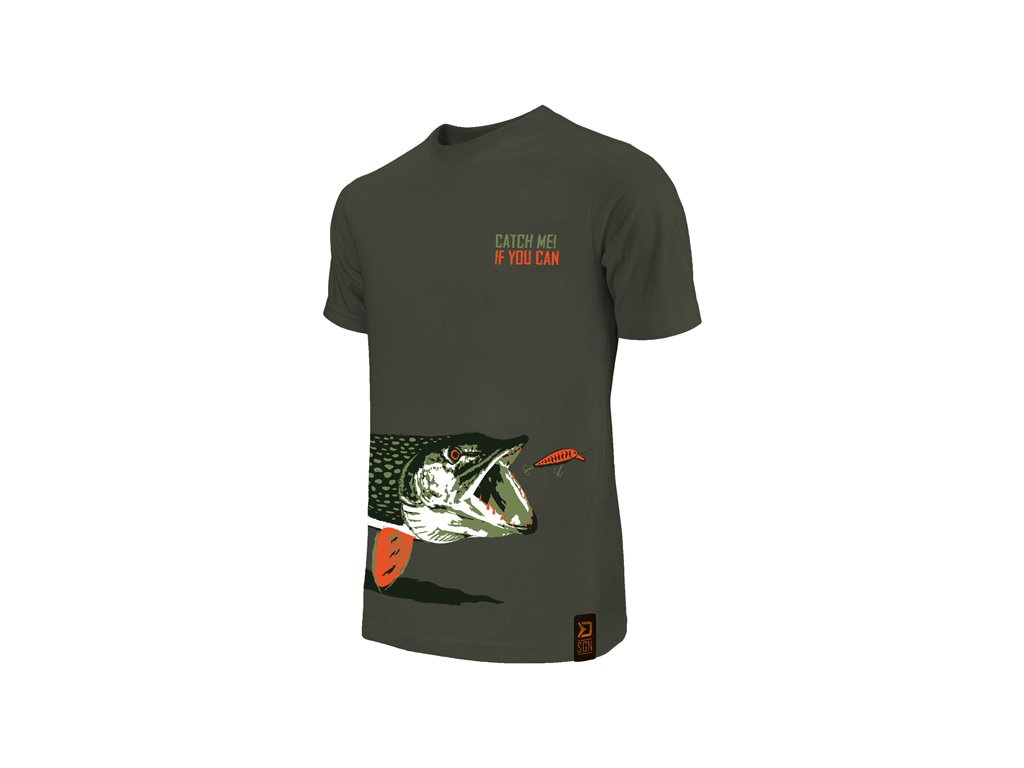 Série stylových a pohodlných triček s vyobrazením ryb, vhodných nejen na ryby, ale také k běžnému nošení. CATCH ME IF YOU CAN (Chyť mě, pokud to dokážeš) se nepochybně stane jedinečným kouskem každého rybářského šatníku, díky kterému se u vody odlišíte. Triko Catch me! Štika je designována v tmavě zelené barvě s vyobrazením štiky, která se právě blíží k nástraze, což je moment, na který čekají všichni příznivci lovu těchto ryb. Samotné tričko je vysoké kvality, stejně jako použitý barevný tisk. Nabízíme je v široké škále velikostí od S až po KING SIZE (ekvivalent 4+XL, který je ve většině zemí označován jako XXXXXL). Model King size tedy hravě oblékne i ty nejstatnější rybáře o hmotnosti 135 kg+. Složení: 100% bavlna