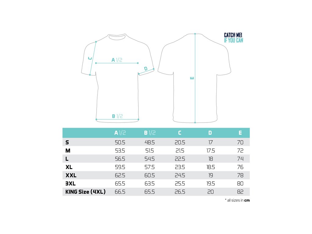 Série stylových a pohodlných triček s vyobrazením ryb, vhodných nejen na ryby, ale také k běžnému nošení. CATCH ME IF YOU CAN (Chyť mě, pokud to dokážeš) se nepochybně stane jedinečným kouskem každého rybářského šatníku, díky kterému se u vody odlišíte. Tričko Catch me! SUMEC je designované v šedé barvě s vyobrazením sumce, který prochází od zad celým bokem až na přední část trička. Samotné tričko je vysoké kvality, stejně jako použitý barevný tisk. Nabízíme je v široké škále velikostí od S až po KING SIZE (ekvivalent 4+XL, který je ve většině zemí označován jako XXXXXL). Model King size tedy hravě oblékne i ty nejstatnější rybáře o hmotnosti 135 kg+. Složení: 100% bavlna