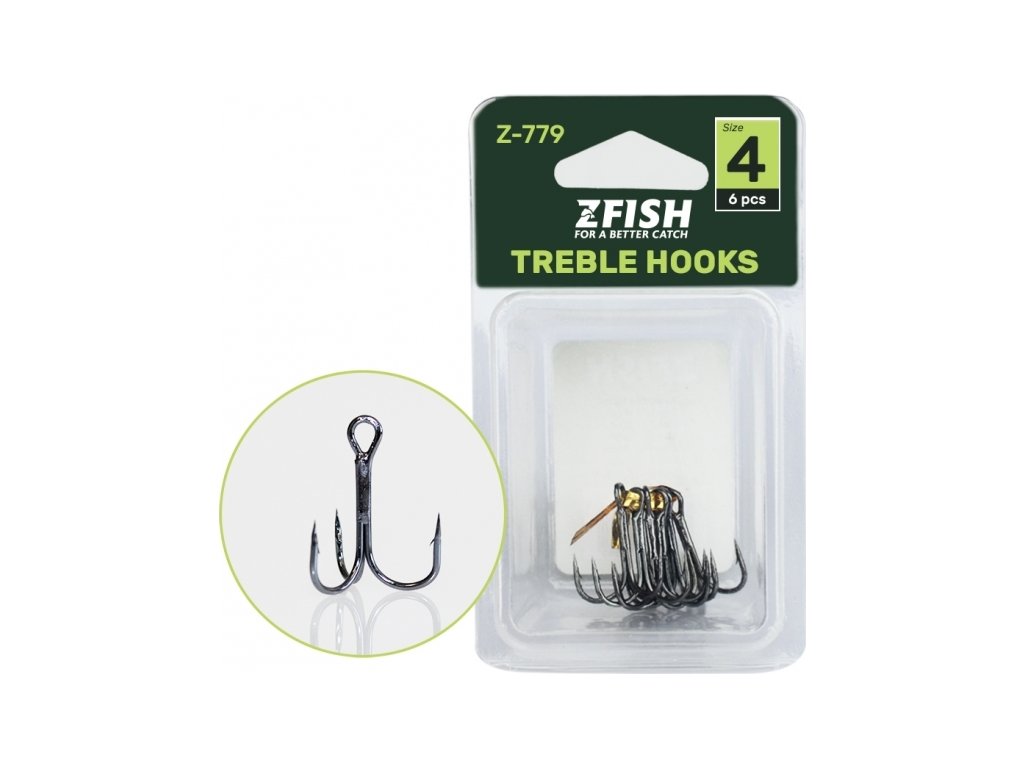 Zfish trojháčky série Z-779 jsou určené pro běžný každodenní rybolov. Jsou vyrobené z pevného materiálu, který vyniká především vysokou pevnosti a dlouhodobou ostrostí.
