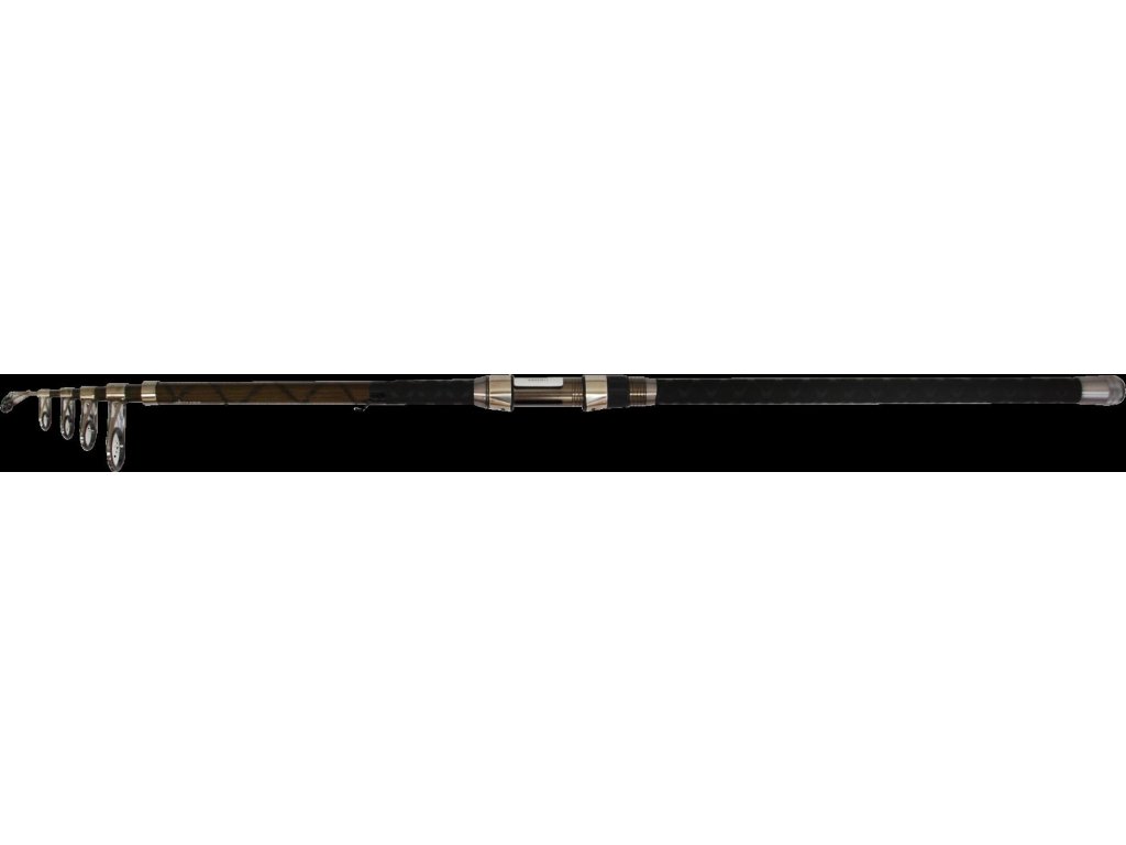 Pruty v délkách od 3,0 do 3,9m a v gramážích 80, 120 a 150g se hodí na všechny druhy lovu na položenou. Díky krátké transportní délce se hodí i na cestování, takže je můžete mít stále při sobě. Pruty byly modernizovány, mají novou velmi příjemnou, trvanlivou a snadno udržovatelnou rukojeť se speciální protiskluzovou úpravou Anti Slip Grip. Odlehčená očka Extra Casting Guides jsou s velkým vnitřním průměrem. První očko má průměr 38mm a je v optimální vzdálenosti od navijáku, což snižuje tření vlasce na minimum a prodlužuje tak délku odhozu. Koncové očko je přehrnuté přes objímku, takže chrání vlasec před poškozením při stahování. Kovové sedlo navijáku udrží pevně naviják i při zdolávání kapitálních ryb. Na výrobu blanku byl použit materiál UHM Carbon Construction Crossed Fibre Reinforcement. Je to materiál z uhlíkových vláken s vysokým modulem pružnosti. Třídimenzionální orientace vláken spolu s křížovým opletem zajišťuje prutu vysokou pevnost a pružnost při zachování velmi nízké hmotnosti. Jeho největší výhodou jsou rychlé reakce při zdolávání ryby. Prut má 5x očko>