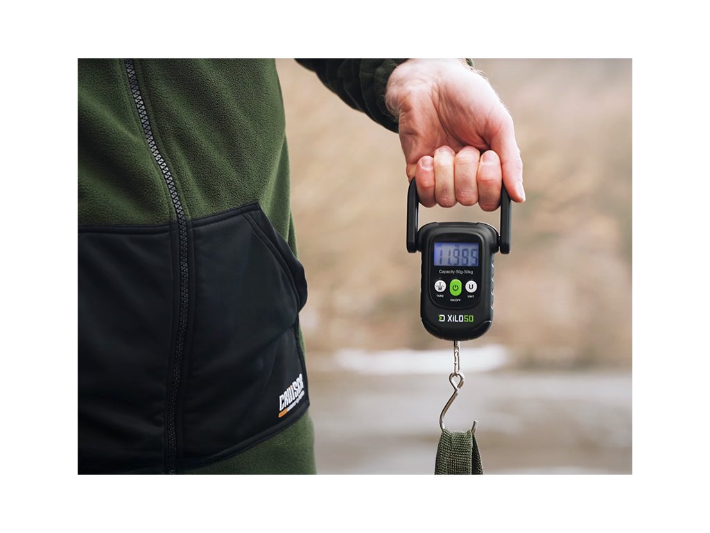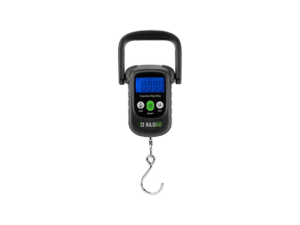 Digitální váha, umožňující měření hmotnosti v rozmezí od 50g až do 50kg s vysokou přesností. XILO má jednoduché ovládání pomocí tří tlačítek. Zapnutí, resp. vypnutí váhy probíhá zatlačením zeleného tlačítka ON/OFF. Krátkými stisky tlačítka U (UNIT) lze měnit jednotky hmotnosti (kg, lbs, JIN, oz), zobrazované na displeji. Funkce TARE umožňuje zavěsit na hák například vážící vak, následně zmáčknout TARE a naměřené hodnoty se vynulují. To znamená, že když následně vložíte do vaku úlovek, zobrazí se jeho čistá váha. Kromě těchto funkcí váha disponuje podsvíceným displejem a indikací slabé baterie či přetížení. XILO je navíc vybavena 100 cm samonavíjecím pásmem, čímž v jednom produktu dostanete kromě váhy také metr. Výhodou je také velmi pevná, masivní rukojeť pro uchopení, kterou je navíc možné zasunout tak, aby měla váha co nejkompaktnější rozměry. Technické parametry: Výška (tělo váhy): 10,3cm Výška (s rukojetí a hákem): 23cm Šířka: 9cm Kapacita váhy: 50kg Hmotnost: 160g Napájení: 2x AAA baterie Baterie jsou součástí balení zdarma!