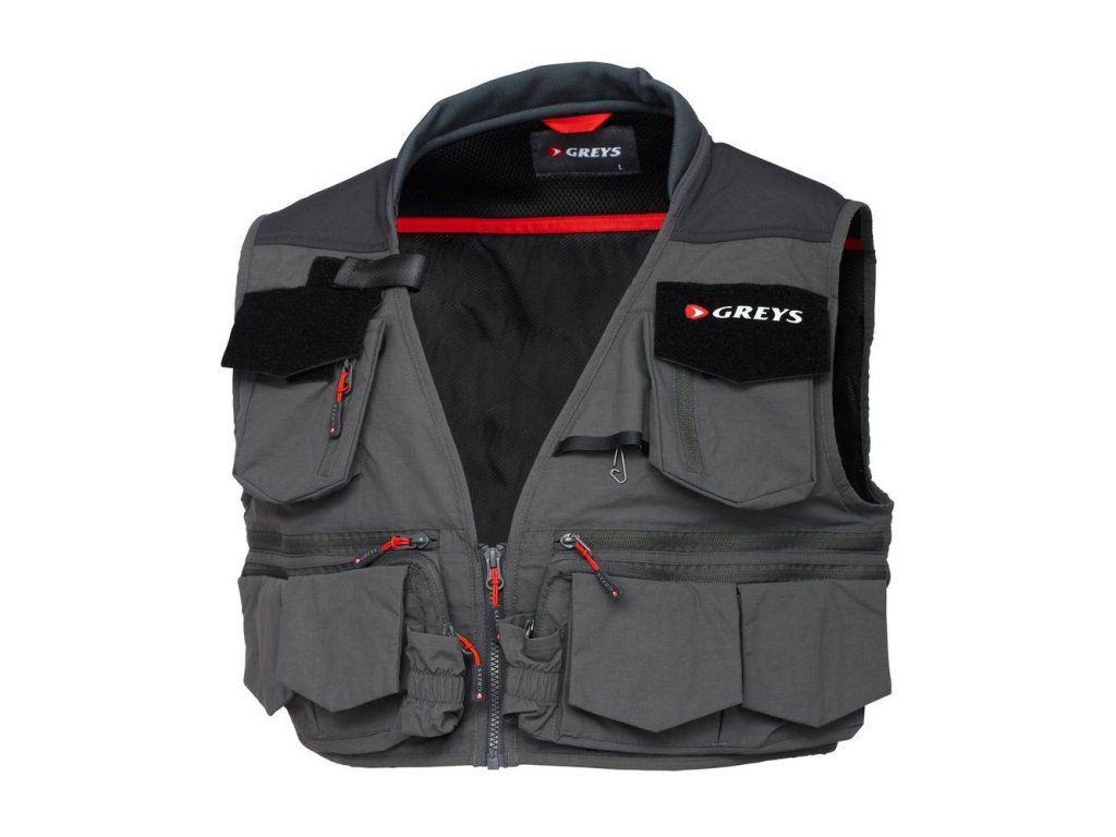 Šedá muškařská vesta je dokonalým způsobem uložení veškerého muškařského vybavení, ať už lovíte u řeky pstruhy nebo lososy, nebo míříte k jezeru za duhami. Vesta má velké množství různě velkých kapes na muškařské krabičky, návazcové materiály, obvaz na mušky, nářadí nebo šňůry. Na vestě je skrytý navíječ pro nůžky na vlasec, velká dvojitá zadní kapsa na větší předměty a velmi prodyšná vnitřní podšívka ze síťoviny, která propouští vzduch v těch teplejších rybářských dnech.