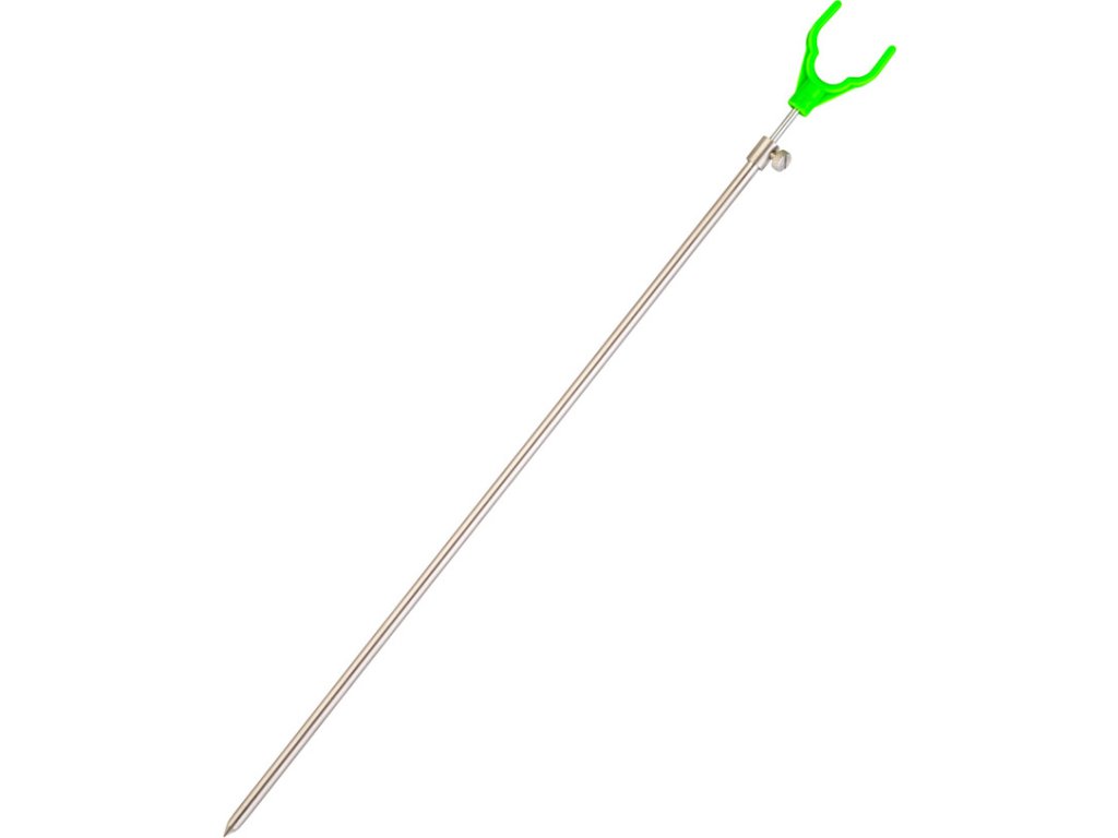 Pevná teleskopická vidlička vyrobená z kombinace hliníku a oceli se vsazeným ostrým hrotem pro snadné zapíchnutí i do tvrdšího povrchu. Vidlička má zakončení ve tvaru U pro pohodlné odložení prutu i s větším průměrem rukojeti.